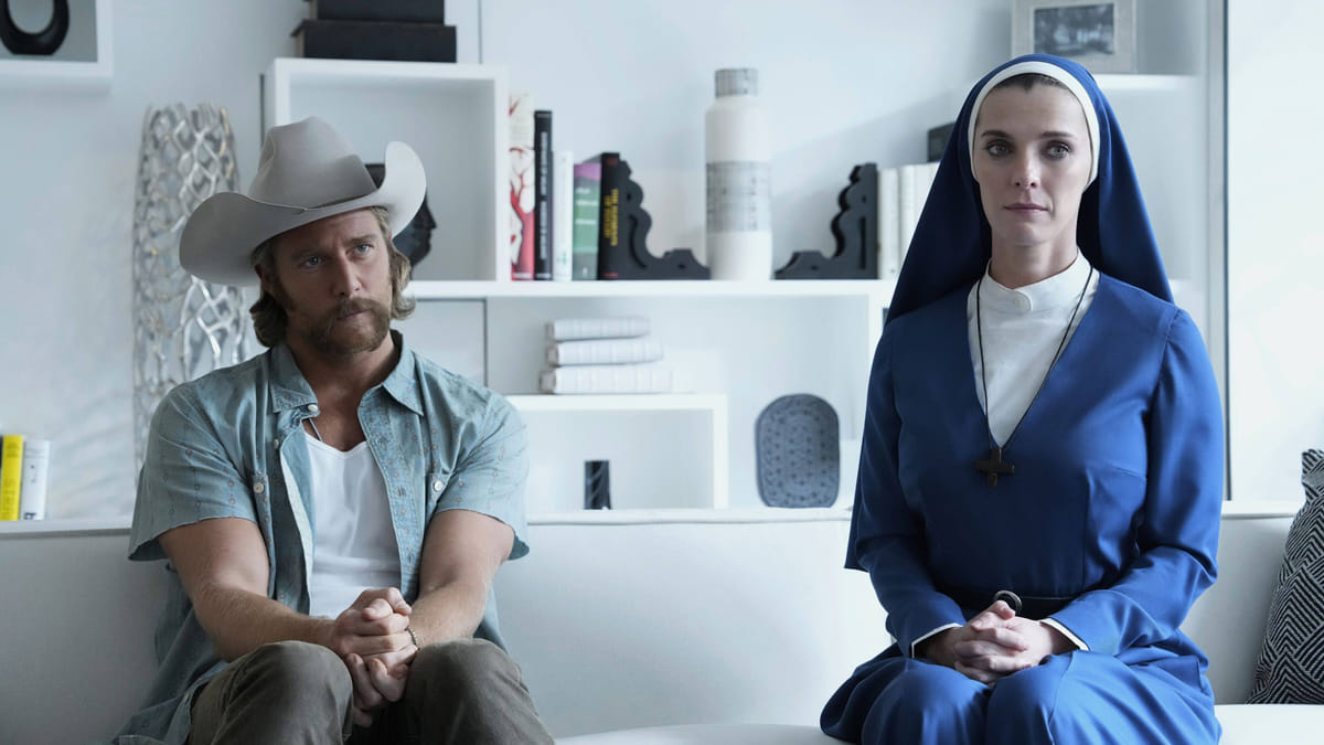 De makers van Mrs. Davis, een geestige serie over religie, kunstmatige intelligentie en nog veel, veel meer, gooien alle remmen los. En dat werkt.