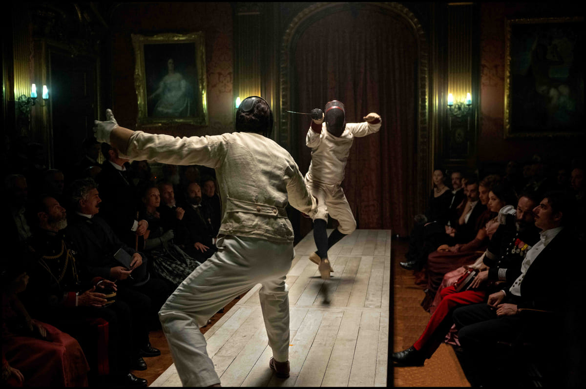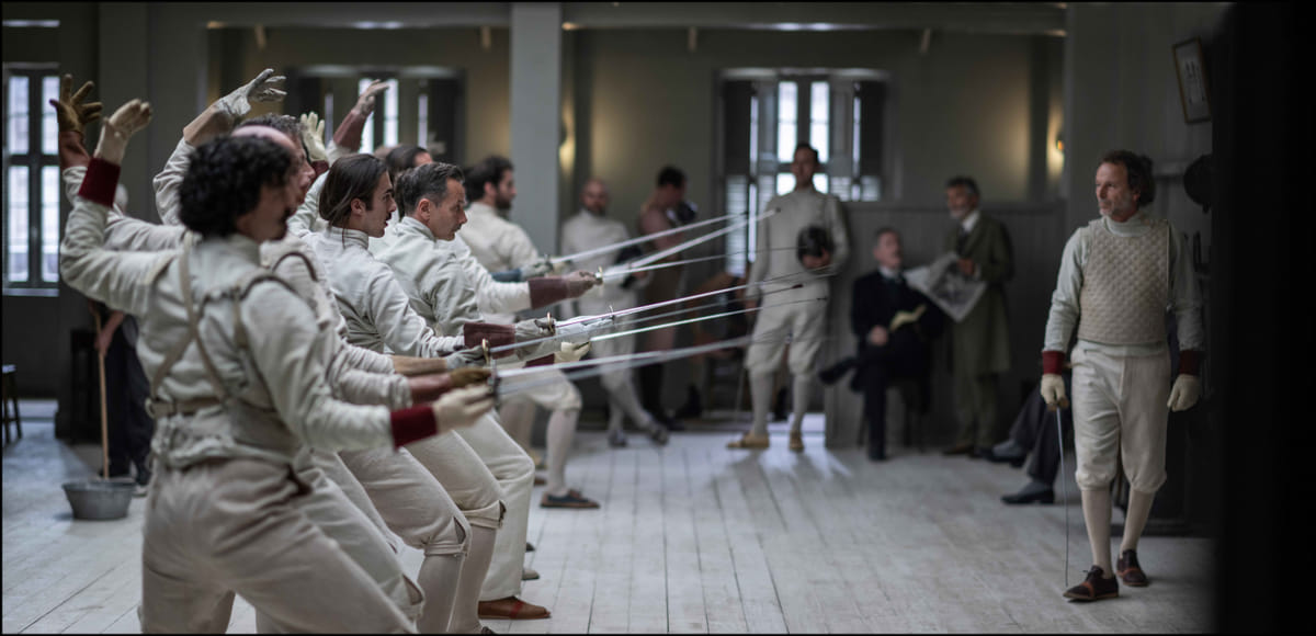 Hoewel officieel verboden is duelleren in de mode in het Parijs van 1887. In deze op ware gebeurtenissen gebaseerde vertelling volgen we zwaardmeester Clément Lacaze, een ex-militair die zich als trainer van schermers onpartijdig dient op te stellen. Dat lukt niet zo best, omdat zijn neef, hijzelf en de feministe Marie-Rose Astié de Valsayre worden uitgedaagd en zelf ook weer hun tegenstanders uitdagen. Onderhoudend, maar jammer genoeg krijgt actie voorrang boven interessantere inhoudelijke lijnen, over hoe het aan mannen voorbehouden eergevoel bijvoorbeeld door modernere, feministische waarden wordt ingehaald. Door een man centraal te stellen terwijl de veel interessantere Astié de Valsayre slechts sidekick blijft, is deze film traditioneler dan hij voorwendt te zijn.