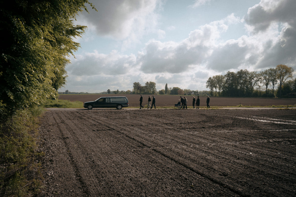 Wanneer tijdens de begrafenis blijkt dat Christine als laatste wil in het mythische Wettelen begraven wil worden, besluiten echtgenoot Bas, hun twee volwassen dochters en nog een handvol aanhangers achter de lijkwagen aan richting Wettelen te lopen. Wat volgens de chauffeur van de lijkwagen ruim drie dagen verderop ligt. Wat volgt is een zwartkomische reis dwars door Vlaanderen. Deze vaak hilarische film is het regiedebuut van schrijver Verhulst en gaat in tegenstelling tot de rouwstoet niet echt ergens naar toe, maar dat is dan ook precies de bedoeling van deze heerlijk surrealistische film.