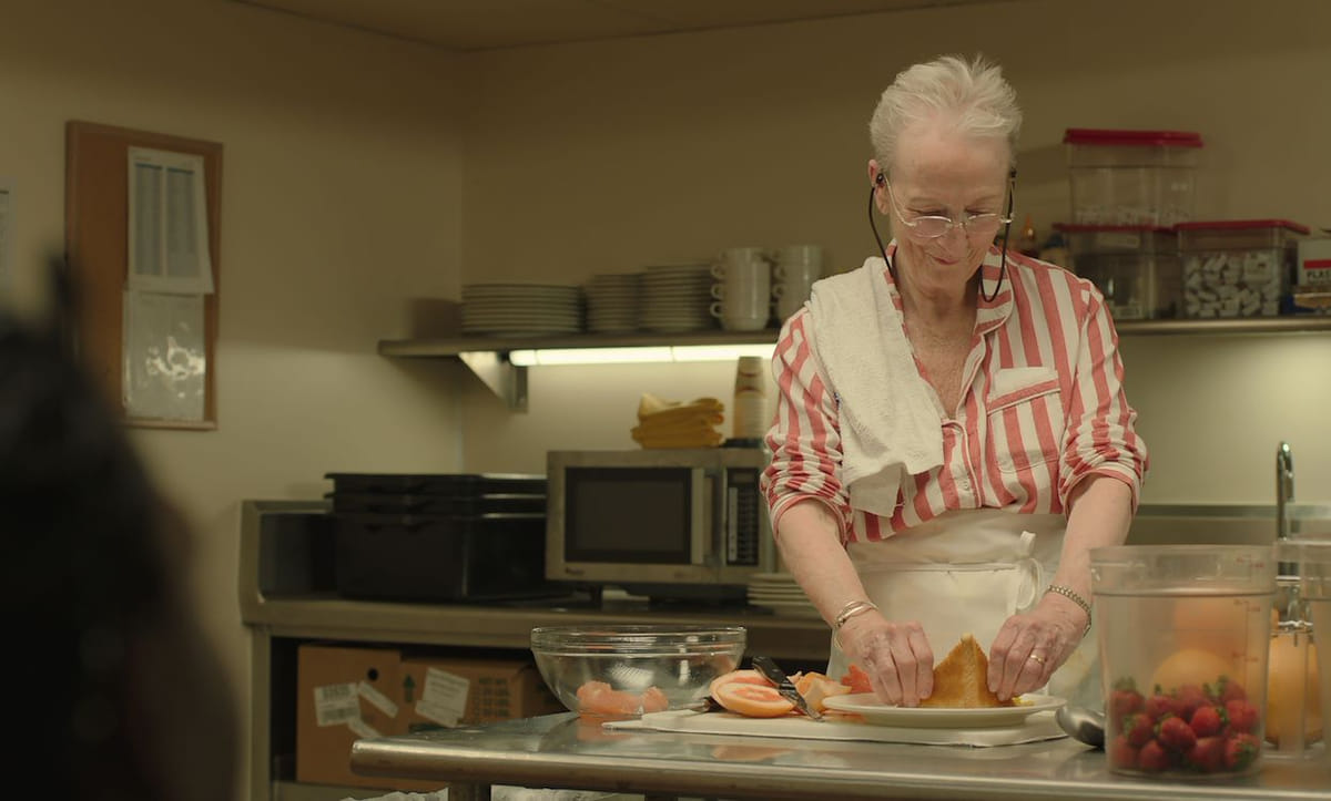Tachtiger Ruth (subliem gespeeld door theaterveteraan Chalfant) is een voormalige kok die veel waarde hecht aan haar zelfstandigheid. Wanneer ze begint te dementeren, wordt ze door haar zoon naar een chique zorginstelling gebracht. Met veel geduld, precisie en compassie legt debuterend cineast Friedland vast hoe Ruth in het huis haar weg vindt, eerst nog angstig en opstandig maar gaandeweg met meer berusting. Dat de focus niet alleen op de aftakeling ligt, maar ook op momenten van warm menselijk contact, maakt dit poëtische portret iets minder wrang dan vergelijkbare films als The Father en Vortex.