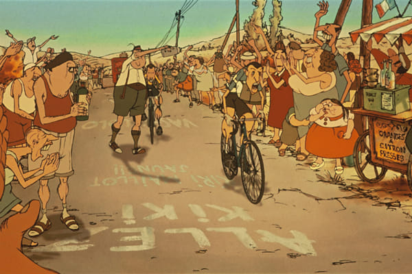 Animatiefilm waarin een grootmoeder, haar wielrennende kleinzoon en zijn hond via de bezemwagen van de Tour de France in de haven van Marseille en vervolgens in een metropool aan de andere kant van de Atlantische Oceaan belanden. In Sylvain Chomets nauwkeurige tekenstijl worden stadsgezichten en schimmige steegjes net zo liefdevol uitgewerkt als de gezichtsuitdrukkingen op de waterhoofden van de personages. Dialogen zijn vrijwel afwezig, muziek wordt spaarzaam ingezet: voor de juiste, ouderwetse sfeer heeft de regisseur aan omgevingsruis genoeg.