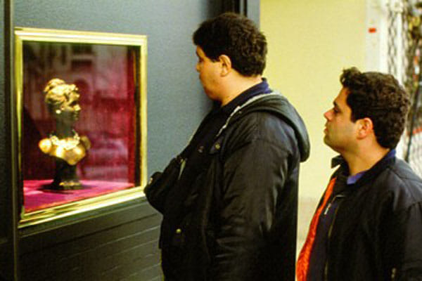 Fraaie, ontroerende film, gebaseerd op een klein krantenberichtje over een dief die door het beveiligingssysteem was opgesloten in een juwelierszaak. De man vermoordde de manager en schoot vervolgens zichzelf dood. Regisseur Panahi (The Circle) vroeg collega-regisseur Abbas Kiarostami een scenario te schrijven rond de vraag wat iemand tot zo'n extreme daad kon brengen. In trage, lang aangehouden scènes schetst Panahi het leven van de man. Langzaam maar zeker wordt duidelijk welke gebeurtenissen hebben geleid tot zijn tragische einde. Crimson Gold is opnieuw een bevestiging van Panahi's enorme talent.