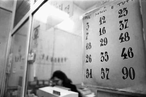 In gloedvol zwart-wit geschoten documentaire over een oud lotto-kantoor in Napels, waar de gokkers zich laten leiden door het Italiaanse getallenboek Grimas. Hetzelfde onderwerp zit ook in Vincent Monnikendams 'Zielen van Napels'.
