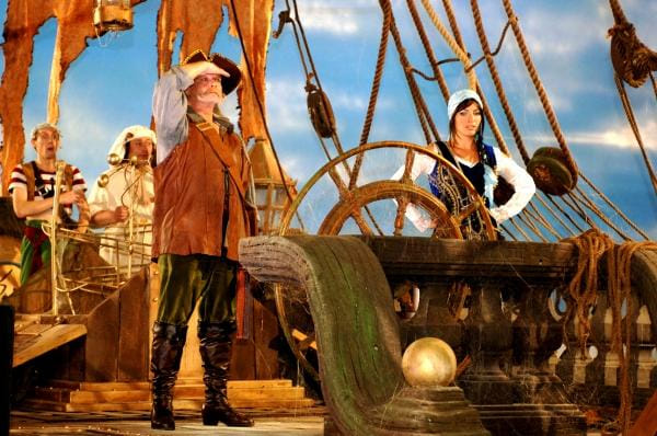 De verklede Belgen uit het kinderprogramma Piet Piraat stuiten in hun slome tweede speelfilm op een spookschip, met aan boord een versteende bemanning. Om die weer tot leven te wekken, moet het blauw van de regenboog worden gevonden. Zal dat lukken? En hoe lang gaat het duren? Het zijn vragen waarop geen volwassene het antwoord te weten wil komen.