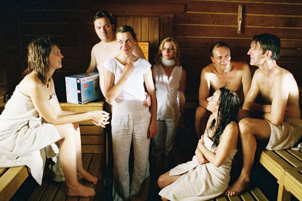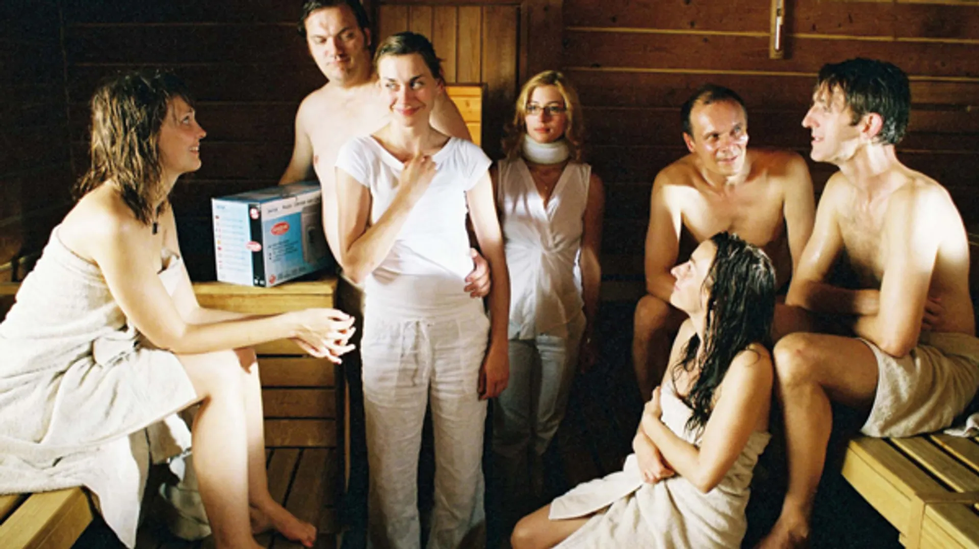 In een Berlijnse sauna ontmoeten mensen met zeer verschillende achtergronden elkaar. Met dit gegeven bouwde de in Dublin geboren en in Duitsland woonachtige Moore een levendige ensemblefilm die een scherp satirisch beeld geeft van de post-millenniumkloof tussen haves en have-nots. Veel heeft het niet gekost (wat mede de matige fotografie verklaart), maar de acteurs vlammen in hun naar het leven getekende rollen. Neo-liberalistisch gewauwel versus het droge brood van de minima, Moore heeft hedendaags Duitsland (en West-Europa) puik geanalyseerd. Titel ('In het zweethok') is een woordspel met 'im Schwatzkasten', omgangs-Duits voor praatstoel of interview.