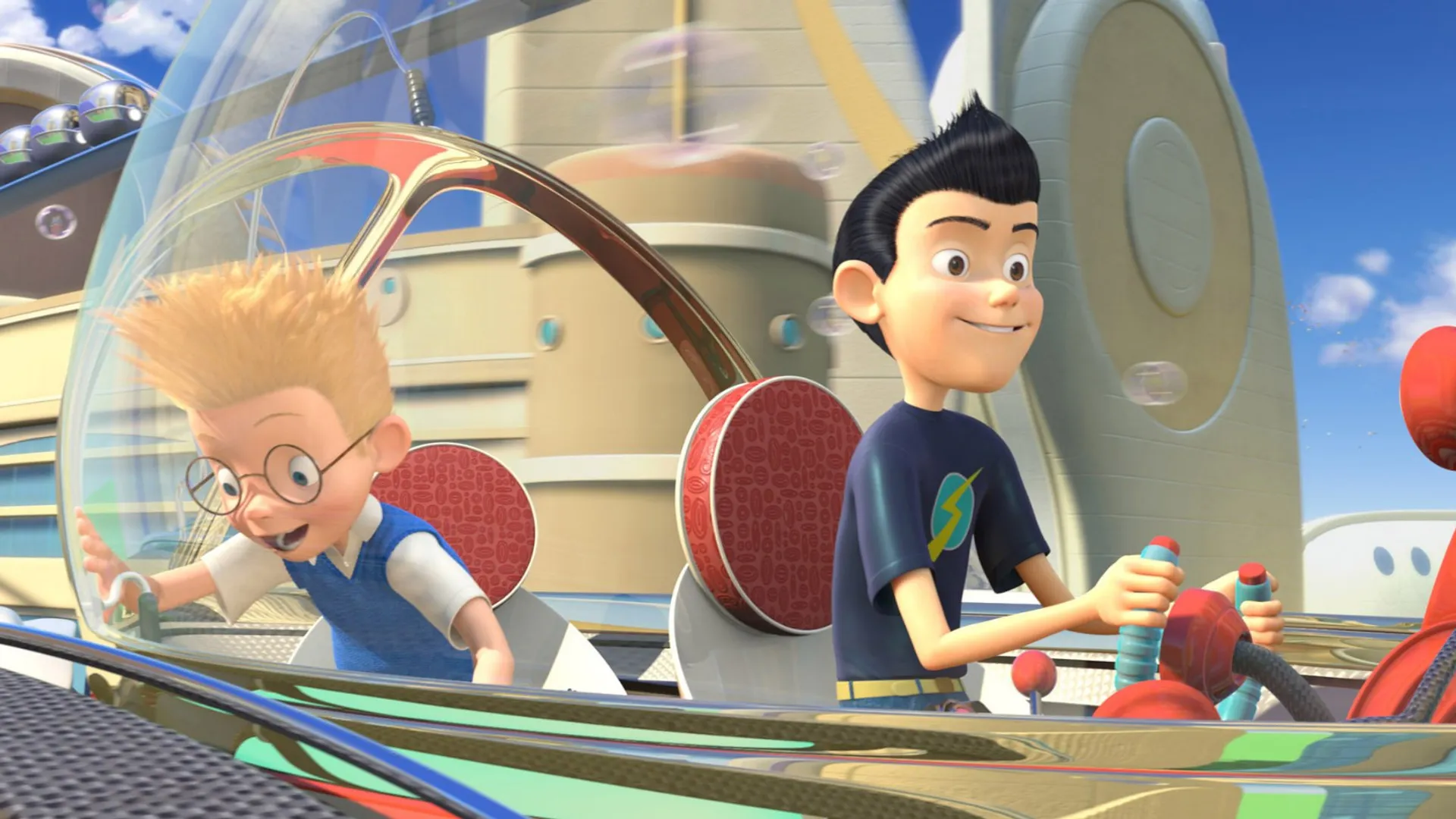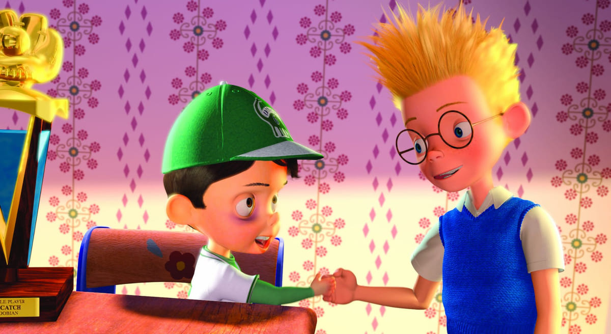'Dit moet enger,' zei Pixar-animatiebaas John Lasseter naar verluidt, nadat Disney Pixar had overgenomen en Lasseter met Meet the Robinsons zijn eerste Disney/Pixar-film moest accorderen. Wat al bijna klaar op de Disney-plank lag als een zoet verhaaltje over een weesje dat met een tijdmachine zijn moeder zocht, liep dankzij Lasseters Pixar-oog uit op een woeste spektakelfilm met een gedenkwaardige griezel in een onnavolgbaar gelaagde toekomst. Het weesje-op-zoek-naar-moeder bleef de rode draad en het ontbreekt ook niet aan de nodige Disney-zoetigheid, maar de algehele bedoening wasemt originaliteit en inventiviteit.