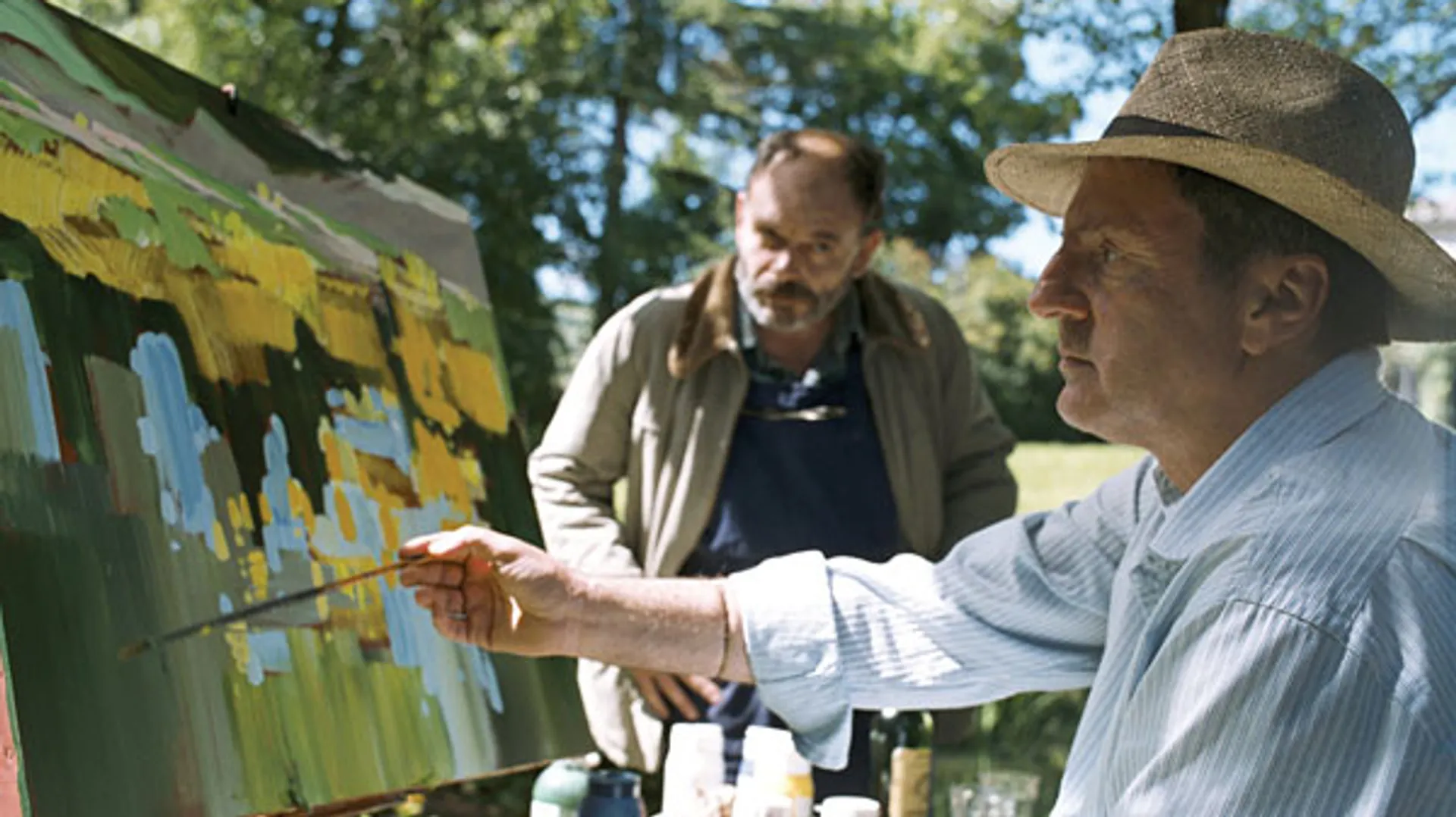 Een mondaine schilder (Auteuil), graag geziene gast op hippe vernissages, die een midlifecrisis uitzit op het platteland, huurt een tuinman (Darroussin) in, een simpele ziel die de stad alleen van de tv kent. Het blijkt dat ze vroeger samen op school hebben gezeten. Ze brengen hun tijd door met het voeren van lange gesprekken, waarbij de tuinman blijk geeft over een rustieke wijsheid te beschikken. Regisseur Becker (L'été meurtrier) verfilmde de gelijknamige, semi-autobiografische roman van schilder-schrijver Henri Cueco in het pittoreske gat Villefranche-sur-Saone. Aardige running gags, een ontroerend, of sentimenteel, einde. Op een ouderwetse manier mooi.