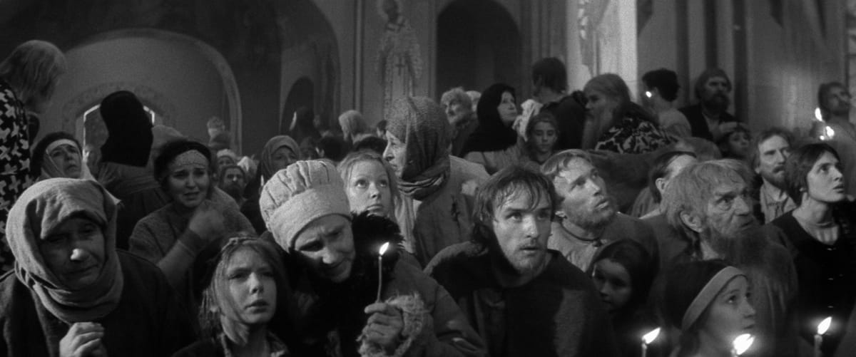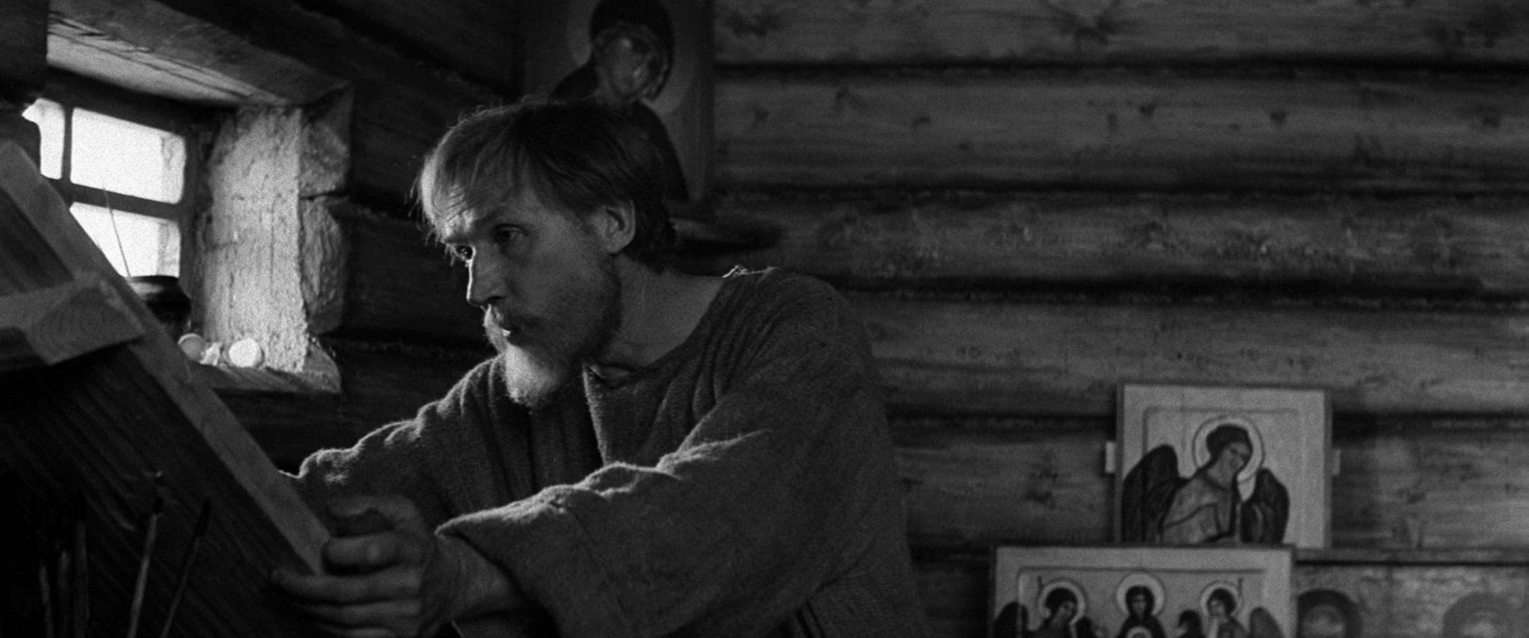 Monumentale film vertelt het verhaal van de veertiende-eeuwse iconenschilder Andrei Roebljev, die na het zien van de gruwelijkheden begaan door de Tataren, de zwijggelofte aflegt en niet meer wenst te schilderen. Pas na de ontmoeting met een jonge klokgieter vindt Roebljev zijn kunst terug. Uiteindelijk optimistische film werd nochtans verboden in de Sovjet-Unie, omdat de censuur wel begreep dat het filmpubliek bij de Tataarse gruwelijkheden al gauw aan de onderdrukking in eigen land zou denken. De repressie duurde niet lang want in 1971, één jaar nadat de film een prijs won op het filmfestival van Cannes, kon Andrei Roebljev ook in de Sovjet-Unie vertoond worden. De film is geschoten in zwart-wit, behalve tegen het eind als Roebljevs ikonen oplichten in felle, hoopvolle kleuren.