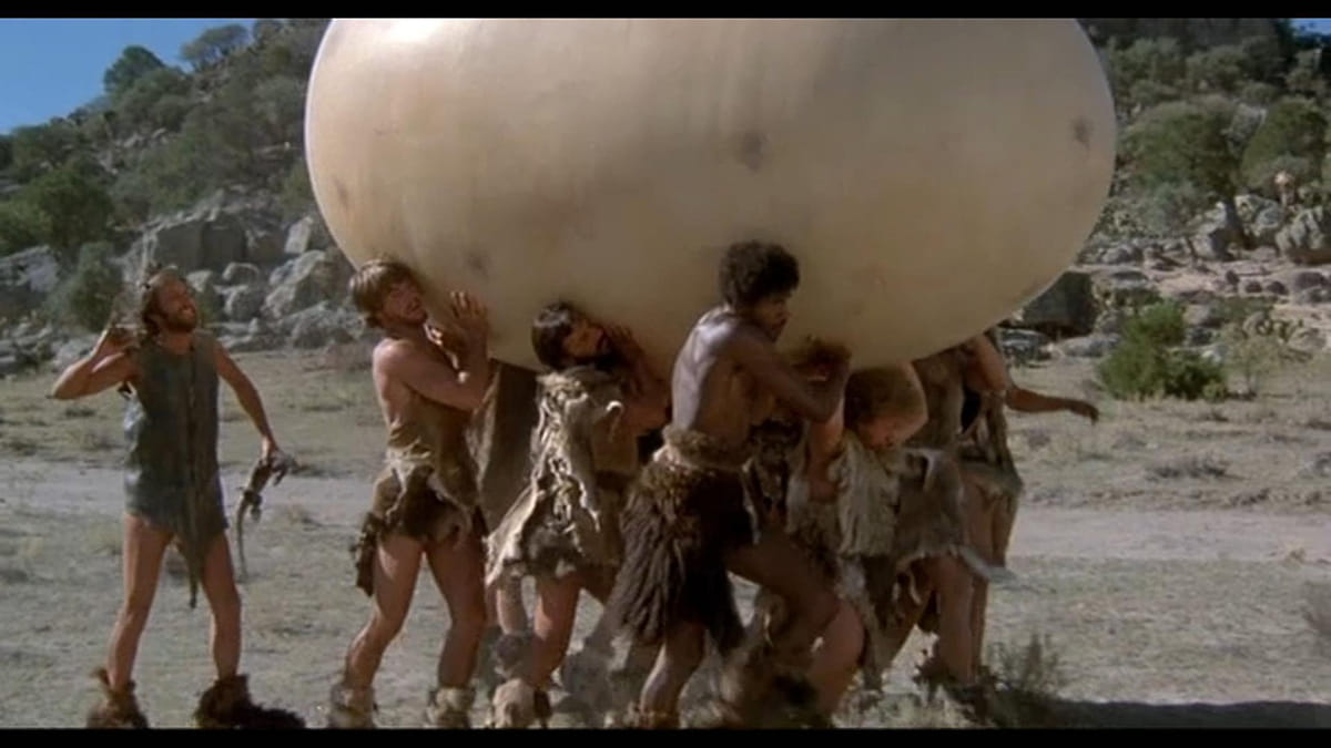 Deze Stenen Tijdperk-grappenmakerij volgt de avonturen van de prehistorische Starr in Eén Triljoen V.C. als mislukkeling die zijn eigen stam sticht, samengesteld uit paria's uit andere grotten. Bezopen komedie, gered door fantastische en leuke, door Jim Danford en David Allen gemaakte, namaak-dinosaurussen. Scenario van regisseur Gottlieb en Rudy de Luca. Camerawerk van Alan Hume.