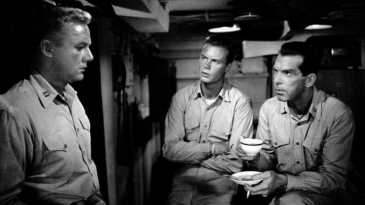 WO II, de Grote Oceaan. De nieuwe strenge commandant Queeg (Bogart) wil de discipline op de mijnenjager de Caine opvijzelen. Echt nodig is dat niet: de bemanning bestaat uit behoorlijk competente zeelui. Over de capaciteiten en koelbloedigheid van Queeg wordt op het schip echter getwijfeld, nadat hij een aantal stevige blunders heeft begaan. Er volgt muiterij, en later een rechtszaak. Geslaagd (rechtbank)drama met een sterke rol van Bogey als weinig heldhaftige neuroot. Zeven Oscarnominaties en enorm succes aan de Amerikaanse bioscoopkassa.