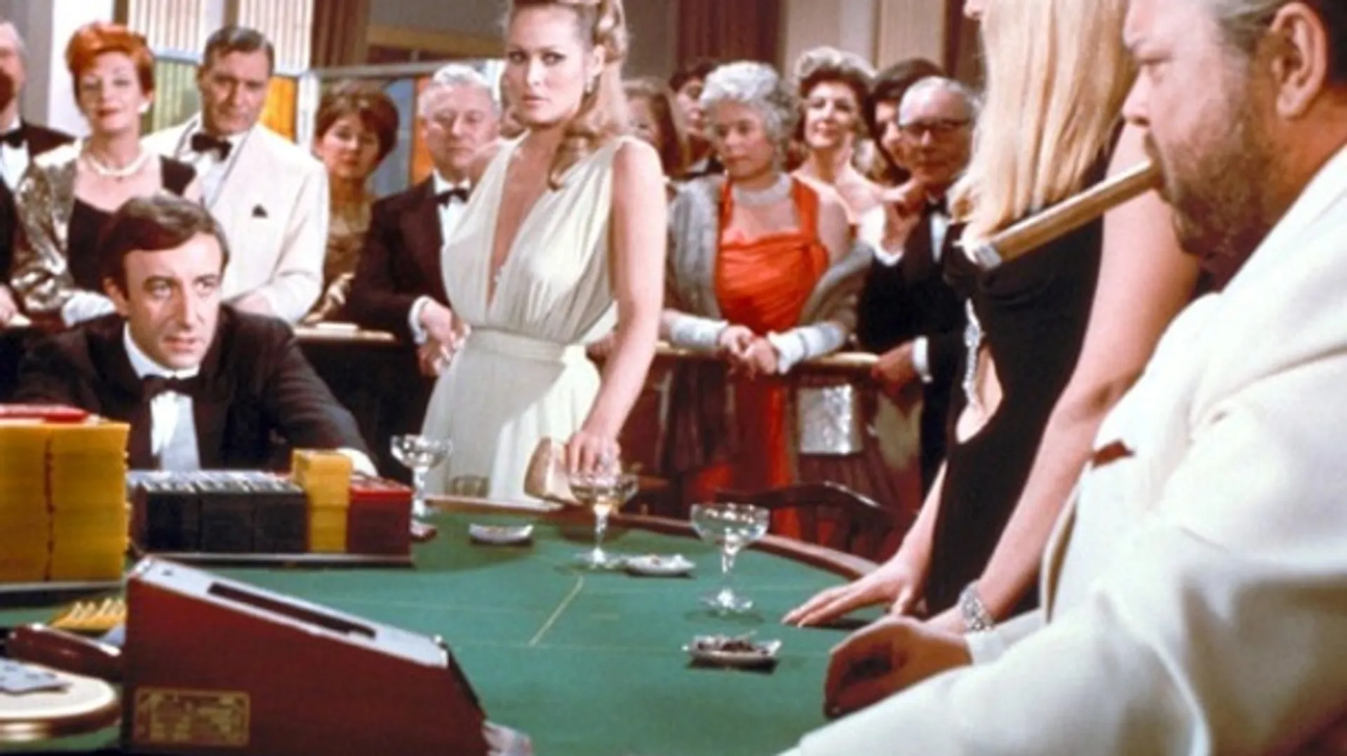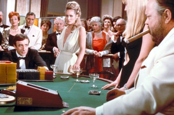 Dolle parodie op de James Bond-films, losjes gebaseerd op een boek van Ian Fleming. Niven is de inmiddels gepensioneerde meesterspion die terugkeert naar zijn post voor een speciale zaak. Incoherente komedie staat bol van de bekende gezichten. Een van de leukste optredens is van Woody Allen als neef Jimmy Bond. Ian Flemings boek werd eerder verfilmd als aflevering in de tv-serie Climax met Barry Nelson als Bond en Peter Lorre als LeChiffre (een rol die in Hustons Casino Royale overigens geweldig wordt vertolkt door Orson Welles).