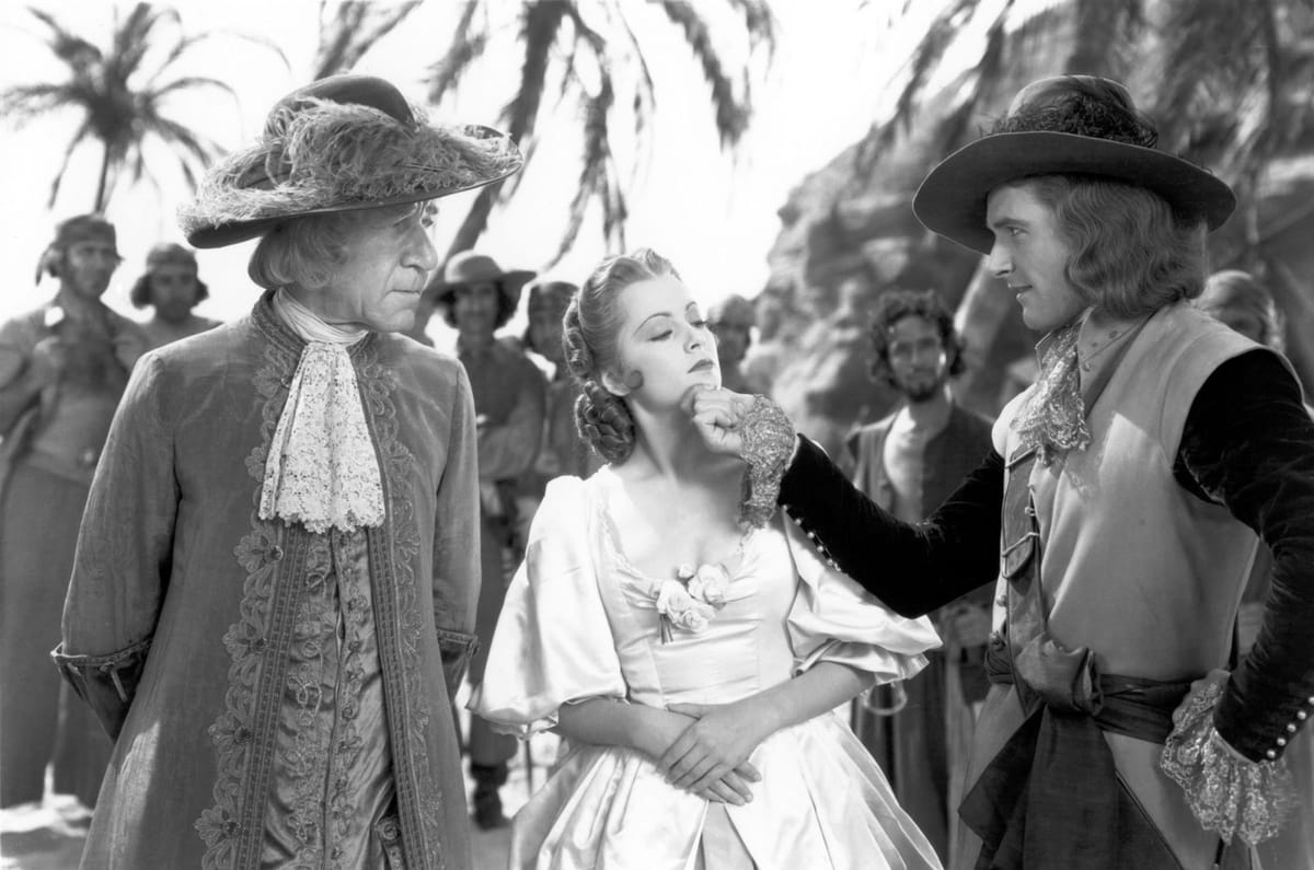 Peter Blood (Flynn), hier nog met het voorvoegsel 'dokter', behandelt in 1685 tijdens een opstand tegen koning James II een gewonde rebel, wordt hiervoor gestraft en als slaaf verbannen naar Jamaica. Blood wordt 'captain' wanneer hij de slaven leidt naar de verovering van een schip, om als piraat te overleven. Zo wordt een tijdje later een schip buitgemaakt met de schone Arabella (De Havilland) aan boord. Captain Blood werd een triomfantelijk succes en maakte het koppel Flynn/Havilland tot sterren. Volgden nog een tiental samenwerkingen tussen de nieuwe sterren en regisseur Curtiz (The Adventures of Robin Hood).