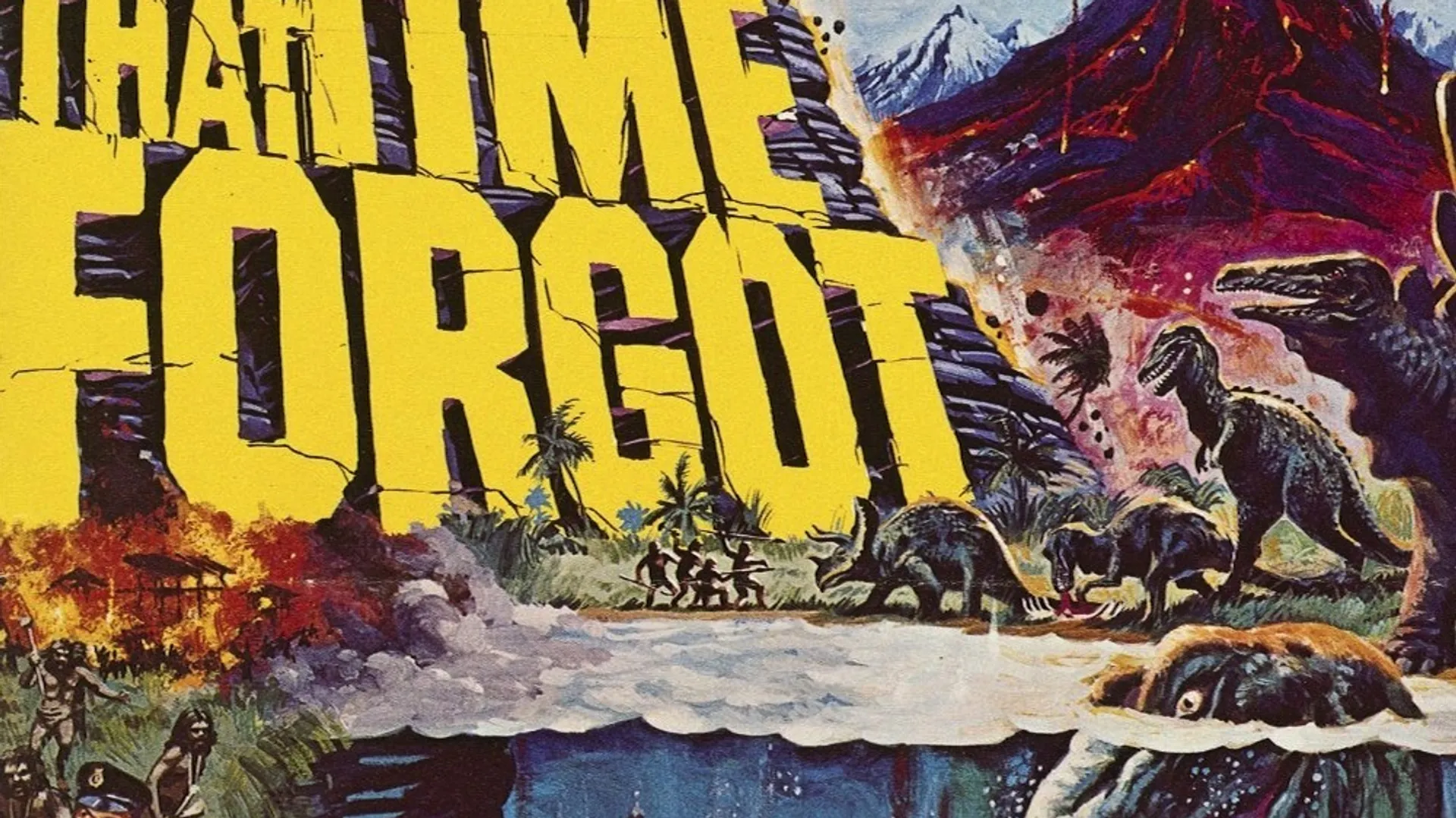 1916. Een Brits schip wordt getorpedeerd door een Duitse onderzeeër. De overlevenden willen de onderzeeër overmeesteren zodra hij aan de oppervlakte komt. Ze slagen in hun opzet, maar de radio van de Duitsers blijkt het te hebben begeven. Duitsers en Engelsen stranden op een eiland dat door de tijd is vergeten, en gezamenlijk zullen ze de gevaren uit voorhistorische tijden trotseren. Redelijk goed SF-avontuur, naar een roman van Edgar Rice Burroughs, dat vooral te lijden heeft onder zwakke speciale effecten. Spel is aanvaardbaar en de actie wordt stelselmatig opgebouwd. Het scenario van James Cawthorn en Michael Moorcock is nogal naïef en zal vooral jongere toeschouwers aanspreken. Fotografie van Alan Hume. Gevolgd door The People That Time Forgot.