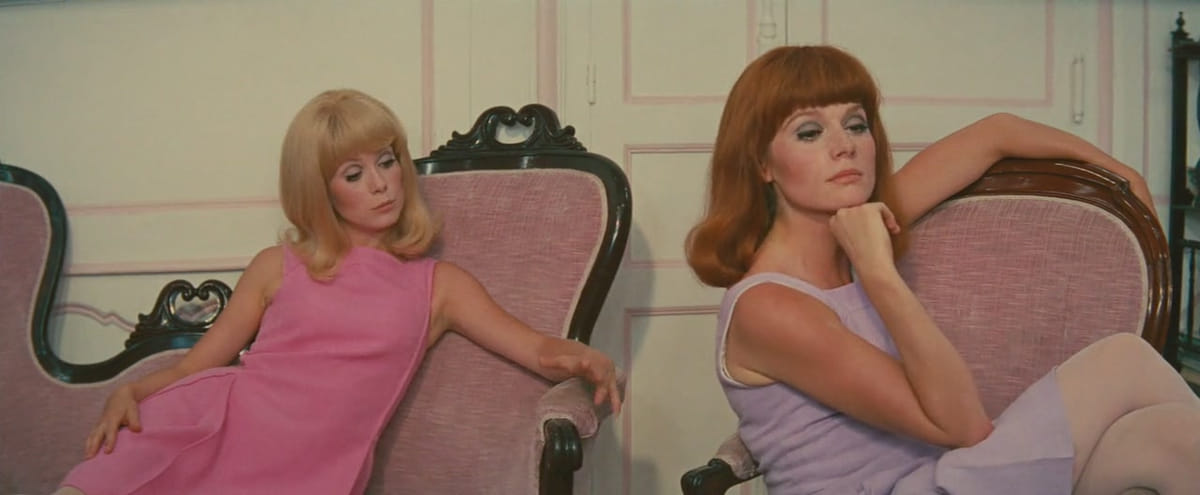 Swingende lofzang op Hollywood-musicals. Deneuve en haar real life zus Françoise Dorléac zijn een tweeling in Rochefort-aan-zee, die verlangen naar het grotestadsleven. De meiden en hun caféhoudende moeder lopen hun voorbestemde liefdes tijdens de jaarmarkt steeds mis, maar de onvermijdelijke ontmoetingen blijven niet uit. Demy verwijst veelvuldig naar Hollywood-musicals als West Side Story, An American in Paris en Gentlemen Prefer Blondes, maar de vindingrijke vormgeving en de voorbijdansende Michel Piccoli en Jacques Perrin laten er geen twijfel over bestaan: dit is een Franse productie. De muziek van Michel Legrand werd genomineerd voor een Oscar.