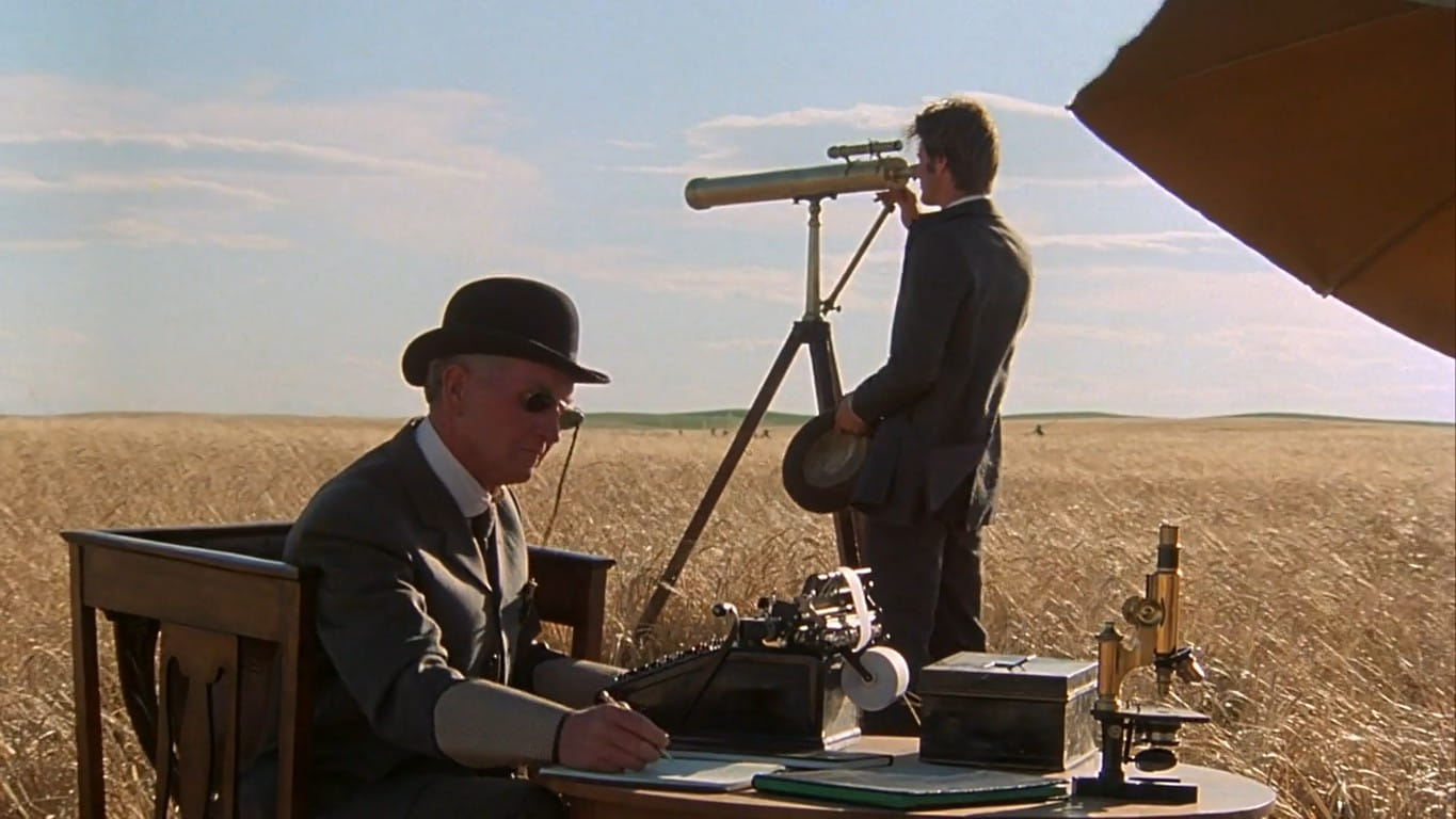 Chicago 1916. Staalarbeider Bill vlucht, na een handgemeen met dodelijke afloop, met vriendin Abby en zusje Linda naar Noord-Texas. Wanneer de terminaal zieke boer bij wie hij werk vindt verliefd wordt op Abby, rijpt in Bills hoofd een cynisch plan. Vijf jaar na Badlands keerde kluizenaar-perfectionist Malick terug met deze liefdestragedie gezien door de ogen van een tienermeisje. En opnieuw heeft de combinatie van lyrisch-cinematografische stijl en elliptisch-bespiegelende verteltrant hypnotische kwaliteiten. Manz' voice-over is al even expressief als haar gelaat. Opgenomen in Canada. Regieprijs in Cannes, Oscar voor de fotografie.