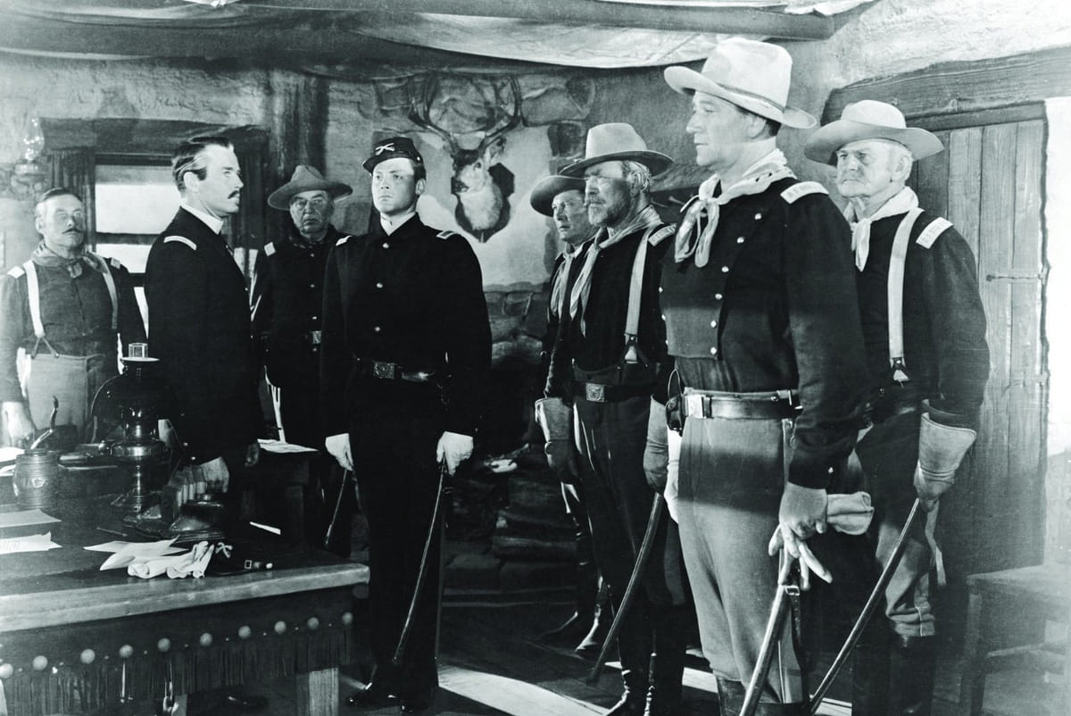 Meesterlijke western van virtuoos John Ford met Henry Fonda als gedegradeerde en uiterst starre commandant van een afgelegen cavaleriepost. Ondergeschikte John Wayne is de onbaatzuchtige teamspeler met hart voor de manschappen en de Indianen. John Ford en scenarist Frank S. Nugent propageerden het ideaalbeeld van de cavalerie als eerste echte smeltkroes, als een broederlijk hechte pioniersgemeenschap die na de Amerikaanse Burgeroorlog plaats bood voor voormalige vijanden. Fort Apache was de koploper van Fords cavalerietrilogie, gevolgd door She Wore a Yellow Ribbon (1949) en Rio Grande (1950).