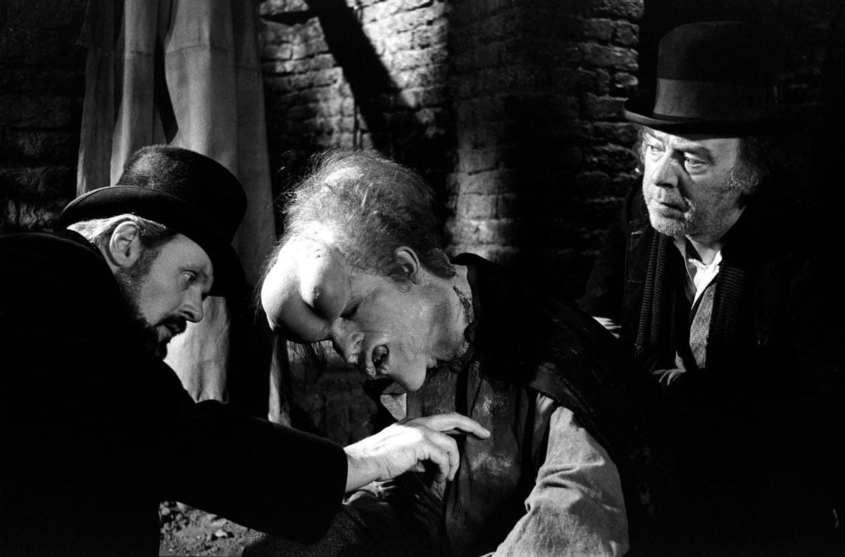 Londen 1884. Tegen betaling kunnen kijklustigen op de kermis de verschrikkelijk misvormde John Merrick (Hurt), artiestennaam The Elephant Man, bekijken. Een jonge arts (Hopkins) bevrijdt hem uit de klauwen van zijn eigenaar en brengt hem naar een ziekenhuis om hem te onderzoeken. Hij ontdekt dat Merrick intelligent en gevoelig is met een sterke persoonlijkheid. Fascinerend drama dat op feiten gebaseerd is. Een tour-de-force van acteur Hurt om ondanks het afschrikwekkende masker emoties te kunnen spelen. Fraaie Victoriaanse sfeer, ijzersterk scenario, prachtige zwart-wit fotografie. Genomineerd voor acht Oscars, waarvan nul toegekend. Wél een César en BAFTA's, voor beste film en acteur.