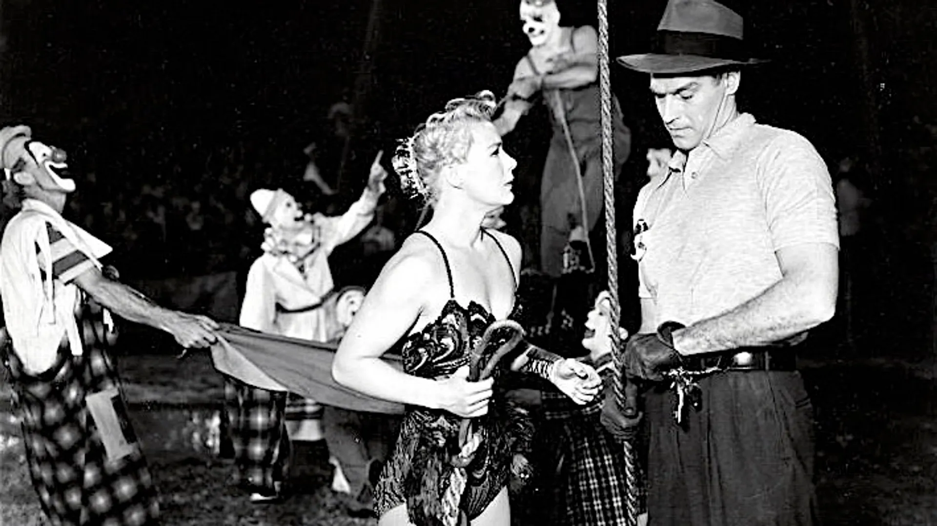 DeMille's hulde aan het circusleven. Hij toont het harde leven van de artiesten, hun solidariteit met elkaar, hun emoties met de dieren en hun drang om steeds de grootste en de beste te zijn. Heston is de ruige directeur, die na een slecht seizoen een bekende trapezewerker engageert. Oscar voor de beste film.