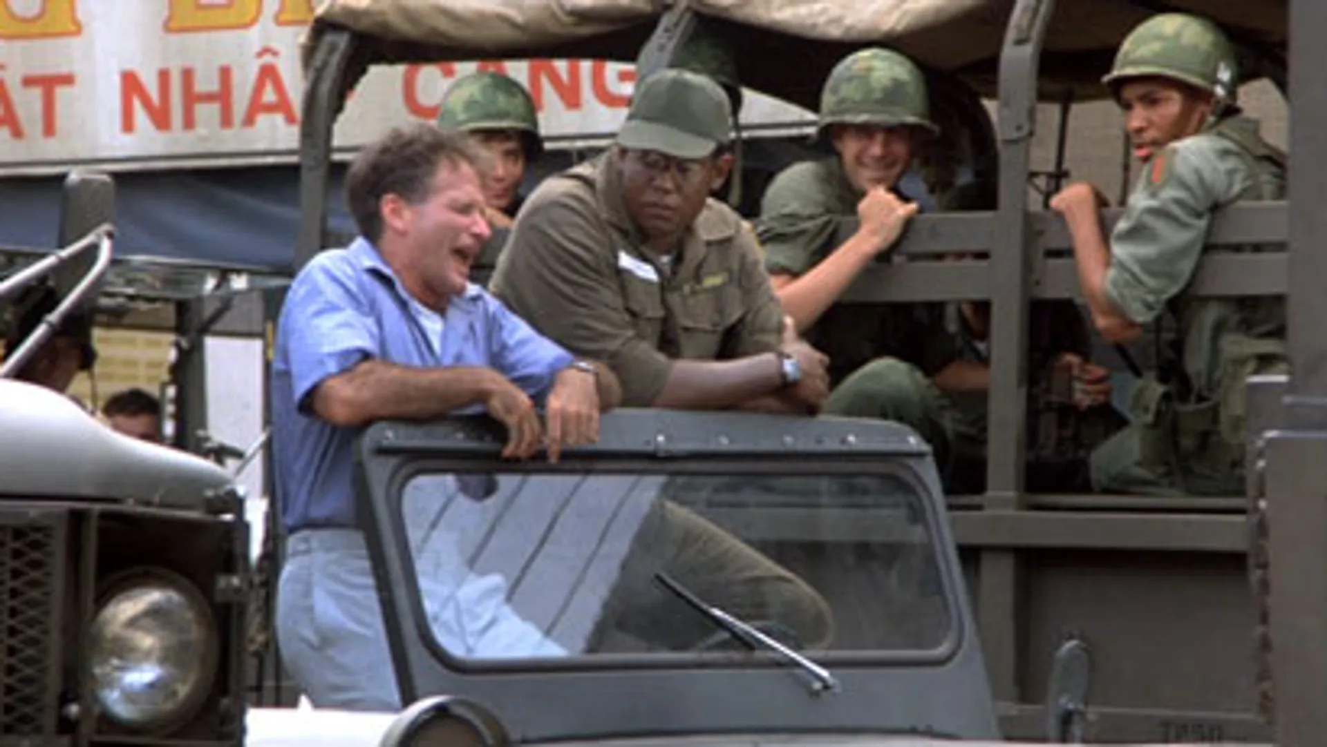 Good Morning, Vietnam is de komische noot tussen de loodzware Vietnam-films die midden jaren '80 werden geproduceerd. Aan spraakwaterval Robin Williams de taak om de vaart in het plezierig oppervlakkige verhaal te houden. Als de beurtelings komische en vertederende leger-disk jockey Adrian Cronauer pept hij Amerikaanse soldaten op met 'opruiende' humor en hippe songs. Onvermijdelijk is er ook sprake van een cultural clash als Cronauer valt op de zus van de autochtone Tuan. Maar verder vooral geen gezeur, draai liever een lekker plaatje!