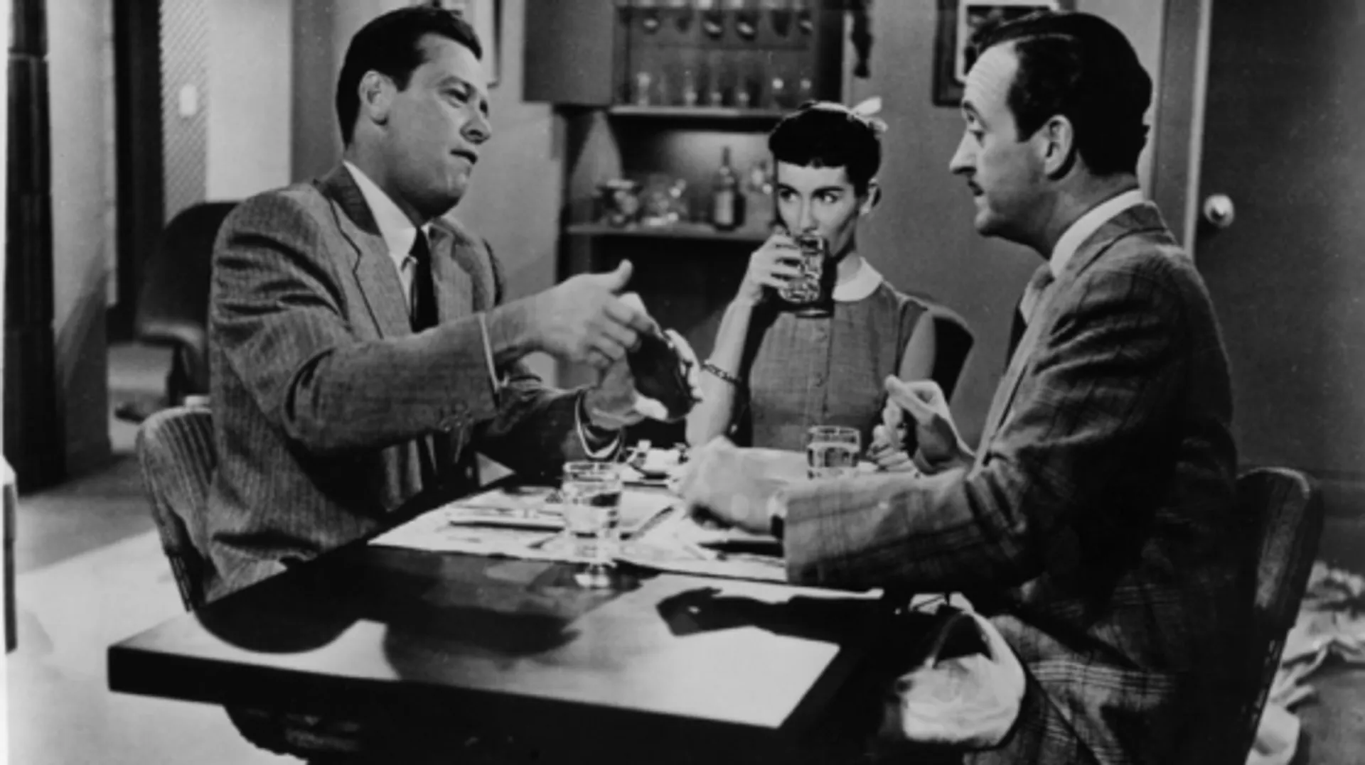 - William Holden, David Niven, Maggie McNamara, Tom Tully, Dawn Addams