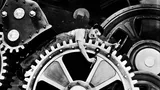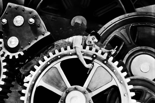 Aan het begin van deze klassieke 'story of industry' (zoals de titelrol vermeldt) zijn de arbeidsverhoudingen duidelijk: de grote baas is een gesoigneerde tiran die Tarzanblaadjes leest, een puzzel legt en z'n personeel met verborgen camera's in de gaten houdt. Chaplin is (voorlopig nog) een van zijn ondergeschikten: een met steeksleutels bewapende fabrieksarbeider, die aan de lopende band moeren aan staat te draaien. Beroemd hoogtepunt van de film is de scène waarin Chaplin bekneld raakt in het raderwerk van de machines. Dat is natuurlijk symbolisch maar vooral heel leuk. Chaplin schreef zelf de filmmuziek.