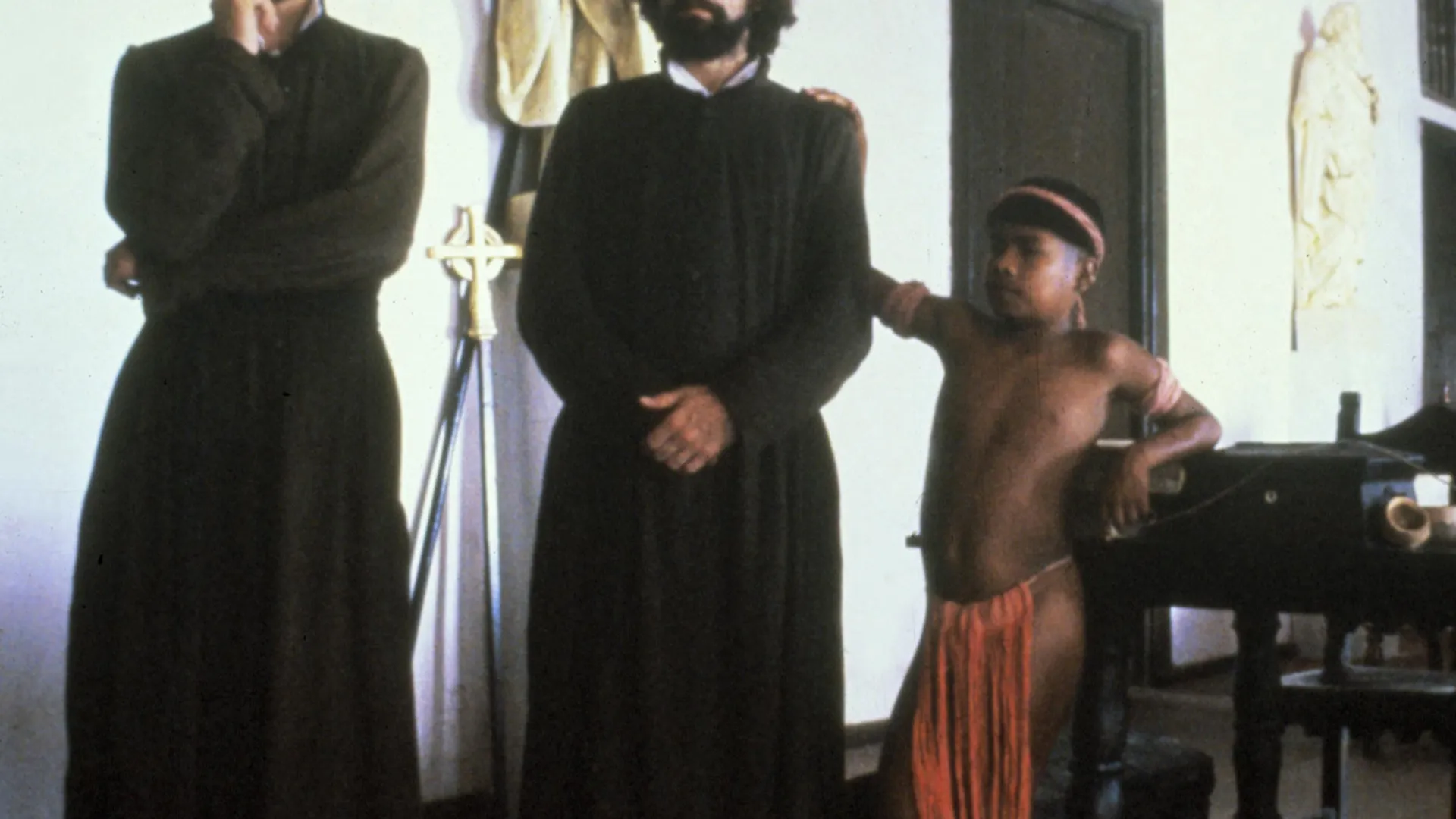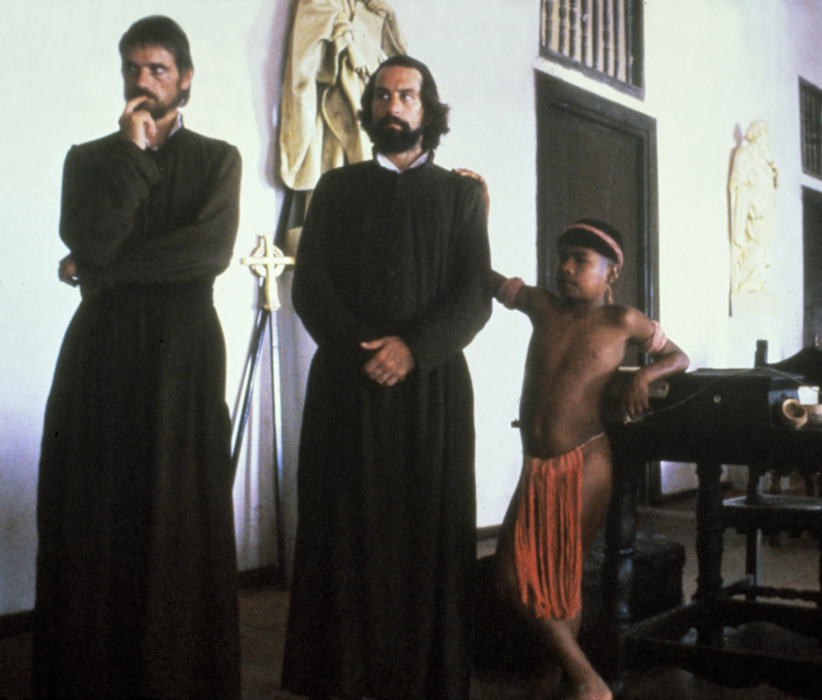 Overweldigend historisch drama met religieuze en politieke accenten, over de in de achttiende eeuw welig tierende mensenhandel in de Zuid-Amerikaanse jungle. De plaatselijke Orde der Jezuïeten, onder leiding van Irons, probeert de lokale bevolking te bekeren om hen zo te behoeden voor de dreigende slavernij. De Niro verandert van slavenhandelaar in Jezuïet en wordt tenslotte zelfs vrijheidsstrijder. De inheemse bevolking komt er in het script helaas nauwelijks aan te pas. The mission kreeg een Oscar voor de visuele hoogstandjes en een Gouden Palm in Cannes.