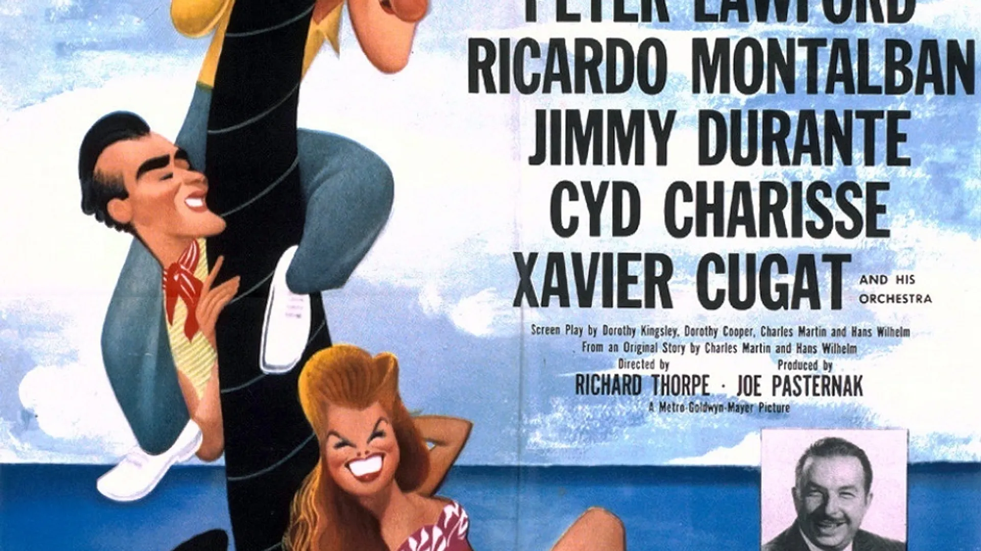 - Esther Williams, Peter Lawford, Ricardo Montalban, Jimmy Durante, Cyd Charisse, Xavier Cugat, Leon Ames, Kathryn Beaumont, Dick Simmons, Marie Windsor, Arthur Walsh, Nina Ross, Betty Reilly, Kay Norton, Nolan Leary, Chester Clute