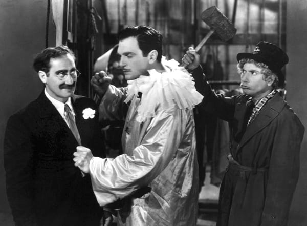Als de Marx Brothers proberen carrière te maken in het operawereldje door Italiaanse vrienden voor grote sterren door te laten gaan, verloopt dat niet helemaal volgens plan en een grote, hilarische chaos is het gevolg. Romantiek, liedjes, grollen en grappen zijn naadloos tegen elkaar aangezet. Waarschijnlijk de beste Marx Brothers film, hoewel fervente liefhebbers misschien roepen dat het DUCK SOUP is. Scenario van George S. Kaufman, Morris Ryskind, Al Boasberg, Bert Kalmar en Harry Ruby. Camerawerk van Merrit B. Gerstad.