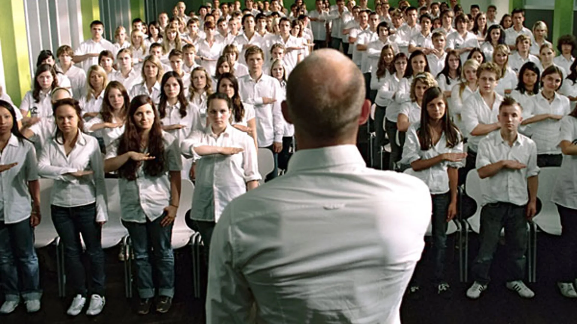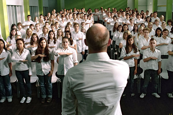 Hoe snel laten mensen zich meeslepen door een totalitaire beweging? Verontrustend snel, bleek uit een experiment op een Amerikaanse high school. Na een boek en een tv-film is er nu ook een film, Die Welle, van de jonge Duitser Dennis Gansel.