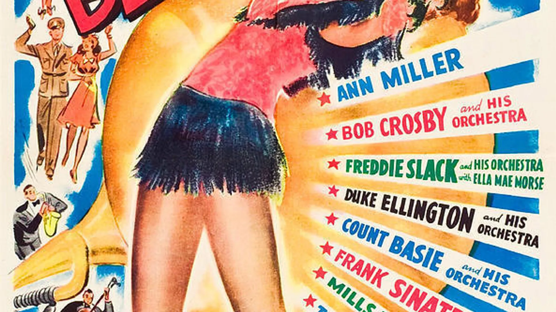 - Ann Miller, William Wright, Dick Purcell, Franklin Pangborn, Larry Parks, Frank Sinatra, Bing Crosby, Count Basy, < Mills Brothers, Duke Ellington