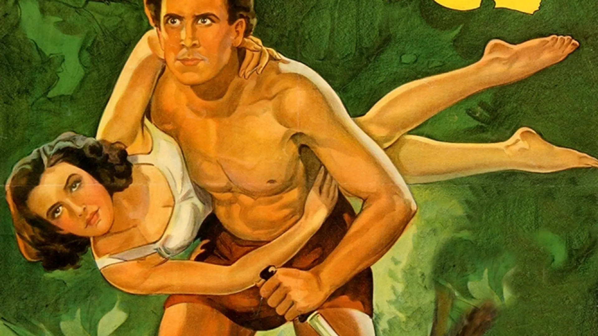 Morris, olympisch kampioen tienkamp, dartelt bekwaam genoeg rond in deze avonturenfilm over een snode Afrikaanse heerser die zijn zinnen heeft gezet op de zwierige wetenschappelijk onderzoekster Eleanor Holm (zelf ook een zwemkampioene). Tarzan raakt daarbij in de klauwen van het opperhoofd. Er is echter geen enkele 'Tarzan'-film waarin de aapmens zolang achter elkaar buiten beeld blijft. Zie ook: 'Tarzan'-serie.