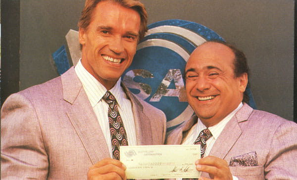 - Arnold Schwarzenegger, Danny DeVito, Kelly Preston, Chloe Webb, Bonnie Bartlett, Marshall Bell, Trey Wilson, Hugh O'Brian, David Caruso