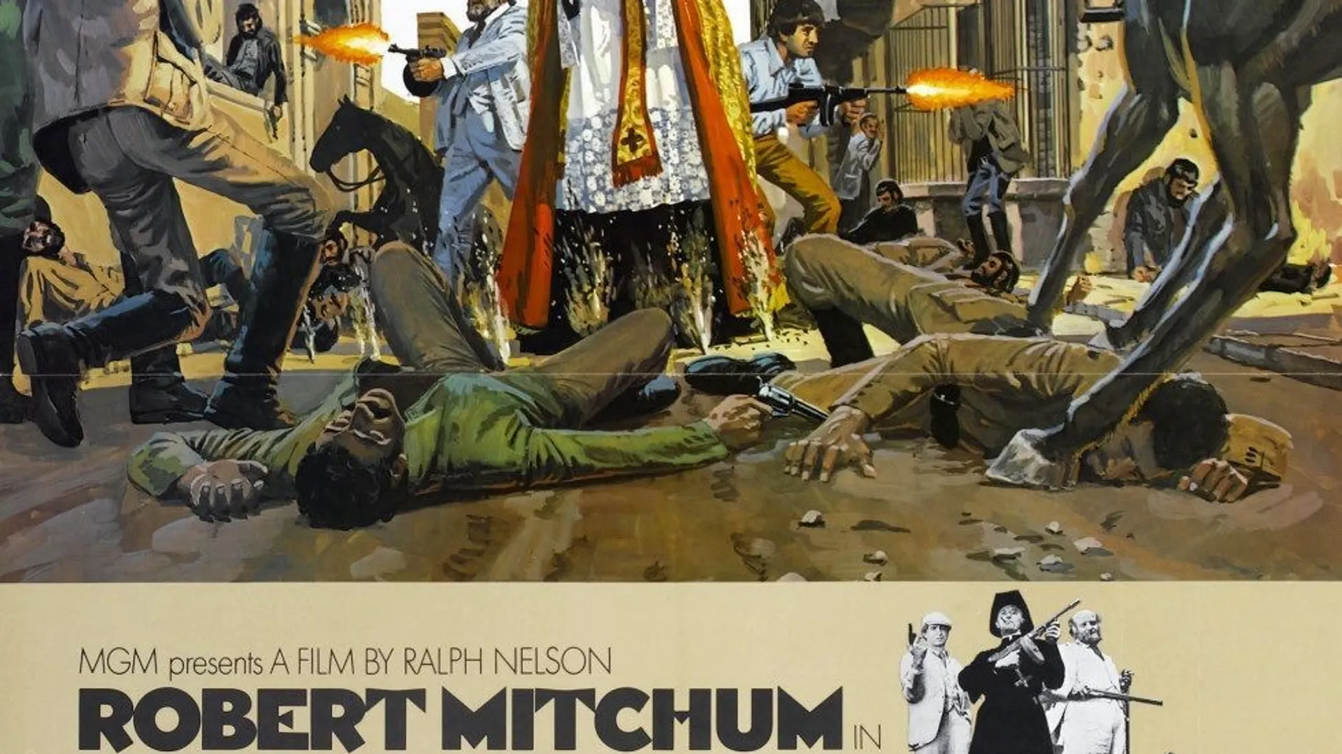 In de late jaren 1920-30 redt de uitgetreden priester Mitchum Hutchinson uit de handen van Centraal-Amerikaanse opstandelingen. Wat later worden ze aangehouden door rebellenleider Colicos die hen, samen met derde man Buono dwingt tot een zelfmoordactie: het dorp Mojada ontlasten van de feodale grootgrondbezitter Langella. Na het sterke SOLDIER BLUE stelde Nelson zwaar teleur met deze zwakke neo-western. Een schaamteloze exploitatie vol bloed en geweld. Weinig origineel scenario van hemzelf, gebaseerd op een roman van James Graham. Ook de acteurs maakten zich er met een Jantje van Leyden van af. Enkele knipoogjes maken het draaglijk. Alex Phillips Jr. stond achter de camera. Gefilmd in Panavision.