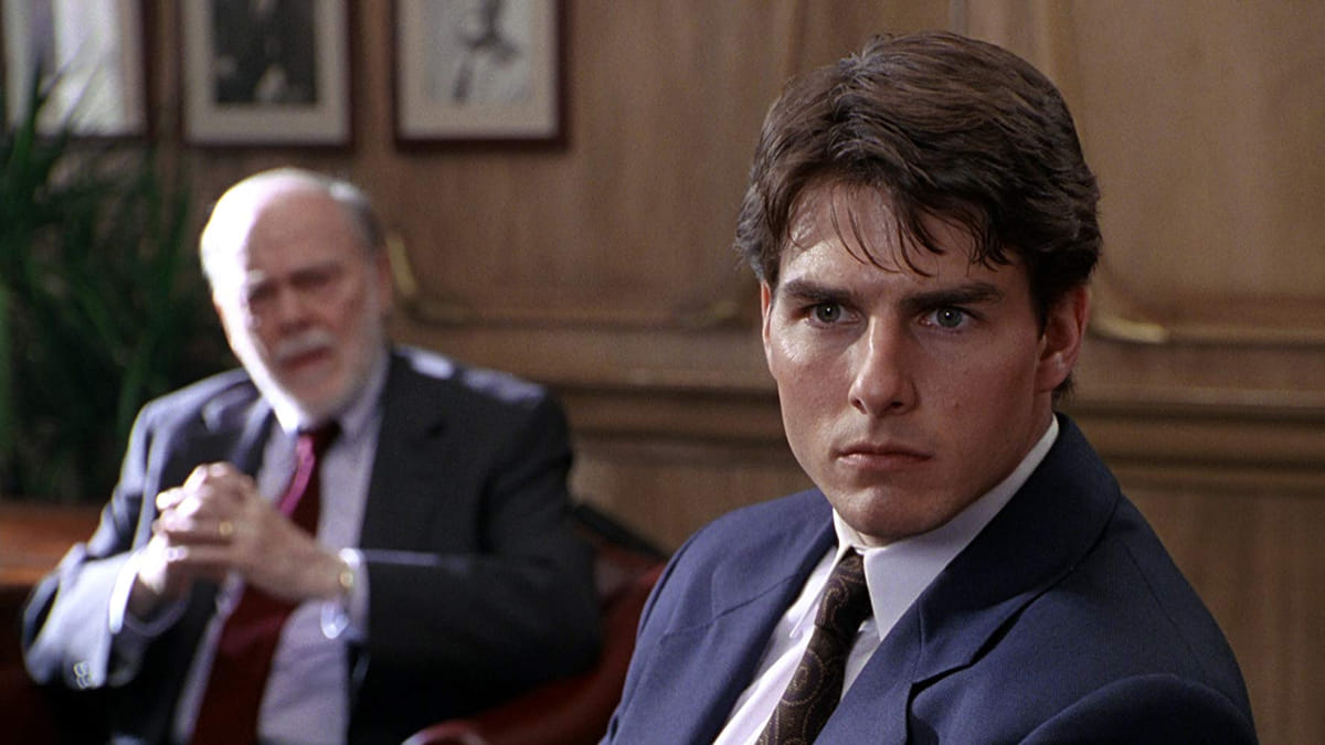 Cruise speelt in deze uitstekende John Grisham-verfilming de net aan Harvard afgestudeerde rechtenstudent Mitch McDeere. Mitch kan het ruimhartige aanbod van advocatenkantoor Bendini, Lambert en Locke niet afslaan. Zijn vrouw Abby (Tripplehorn) ruikt al rap rottigheid, maar Mitch ontwaart pas onraad wanneer hij met belastende foto's wordt gedwongen bij 'De Firma' te blijven. Het erin luizen van Mitch is spannend weergegeven. De kijker moet genoegen nemen met vaag vreemd gedrag van collega-advocaten en de intuïtie van Abby. Maar dat blijkt onder muziek van David Grusin (The Graduate) en voor de stijlvolle camera van John Seale (The English Patient) meer dan voldoende. Prima bijrollen van vooral Hackman en Holbrook.