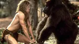 In deze George of the Jungle benadert de titelheld (Fraser) de IQ-loosheid van het oorspronkelijke cartoonpersonage Tarzan. George krijgt een bezoekje van de Amerikaanse Ursula Stanhope (Mann), die op safari is. Haar irritante verloofde Lyle van de Groot (Church) zit haar op de hielen, deels om de legendarische Witte Aap van de Jungle te ontdekken. Die aap is George natuurlijk, en hij valt voor Ursula. Veel speciale effecten, van Dream Quest Images (The Sixth Sense) en Jim Henson's Creature Shop (L'ours), werden gebruikt om de zachte, maar soms randje smakeloze malligheid overtuigend te maken. George of the Jungle werd een onverwacht supersucces.