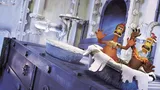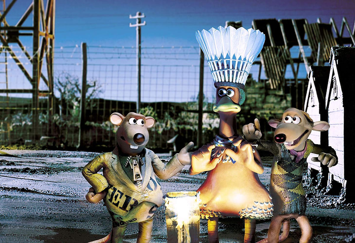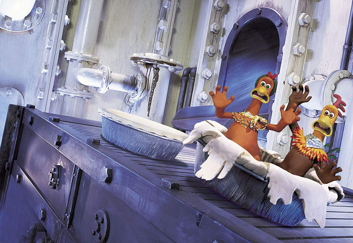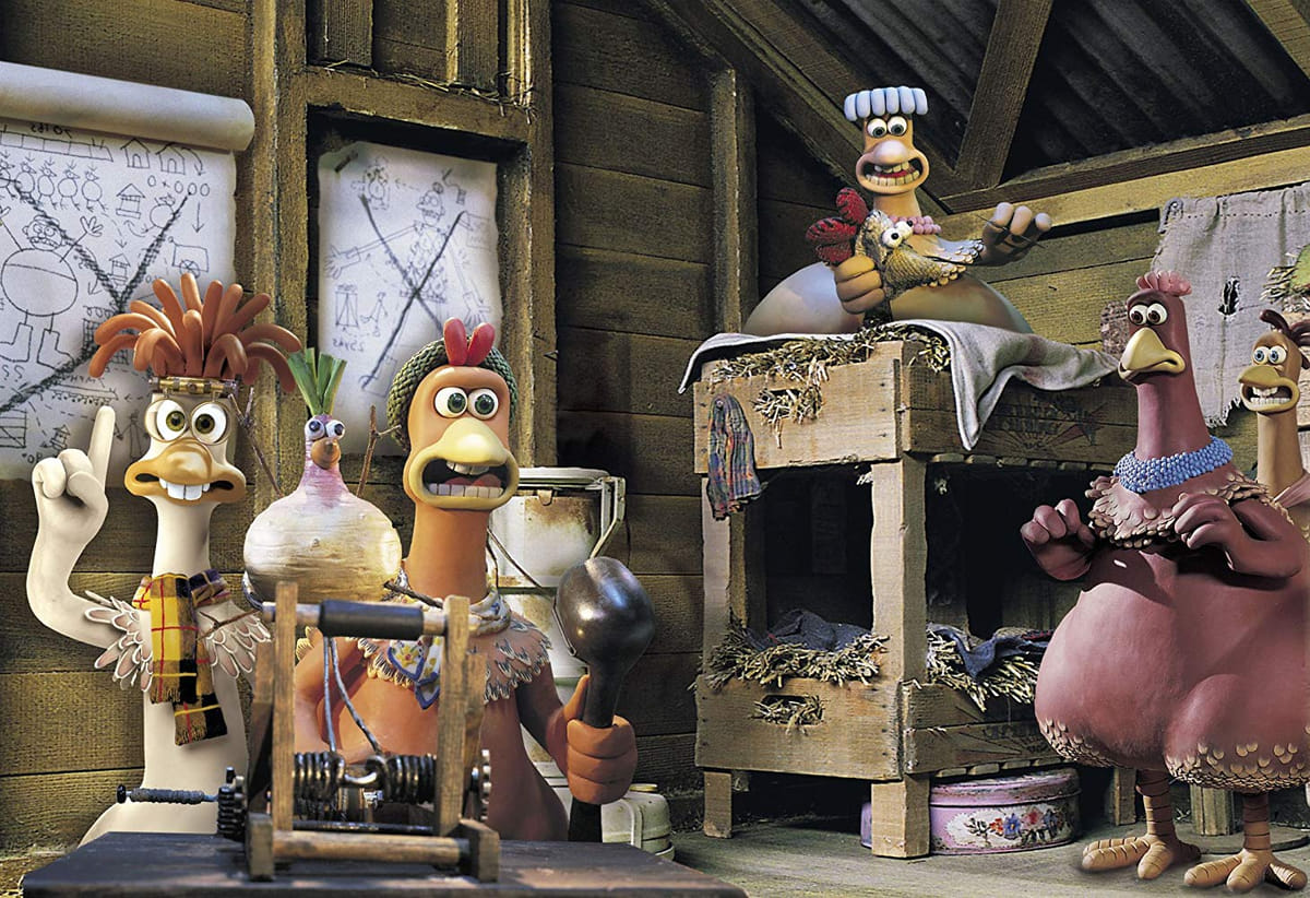 In de hilarische openingsscène van deze kleianimatie zien we kip Ginger verwoede pogingen doen te ontsnappen uit een kippenboerderij op het platteland van het Engelse York. De boerderij blijkt een waar strafkamp, compleet met prikkeldraad en honden en regelmatig moeten de kippen op appèl om verantwoording af te leggen voor hun eiproductie. De redding lijkt nabij wanneer Rocky letterlijk uit de lucht komt vallen. Het is aan hem om de kippen te leren vliegen. Verbluffend leuke animatie uit de koker van de Aardman studio's (Wallace & Gromit).