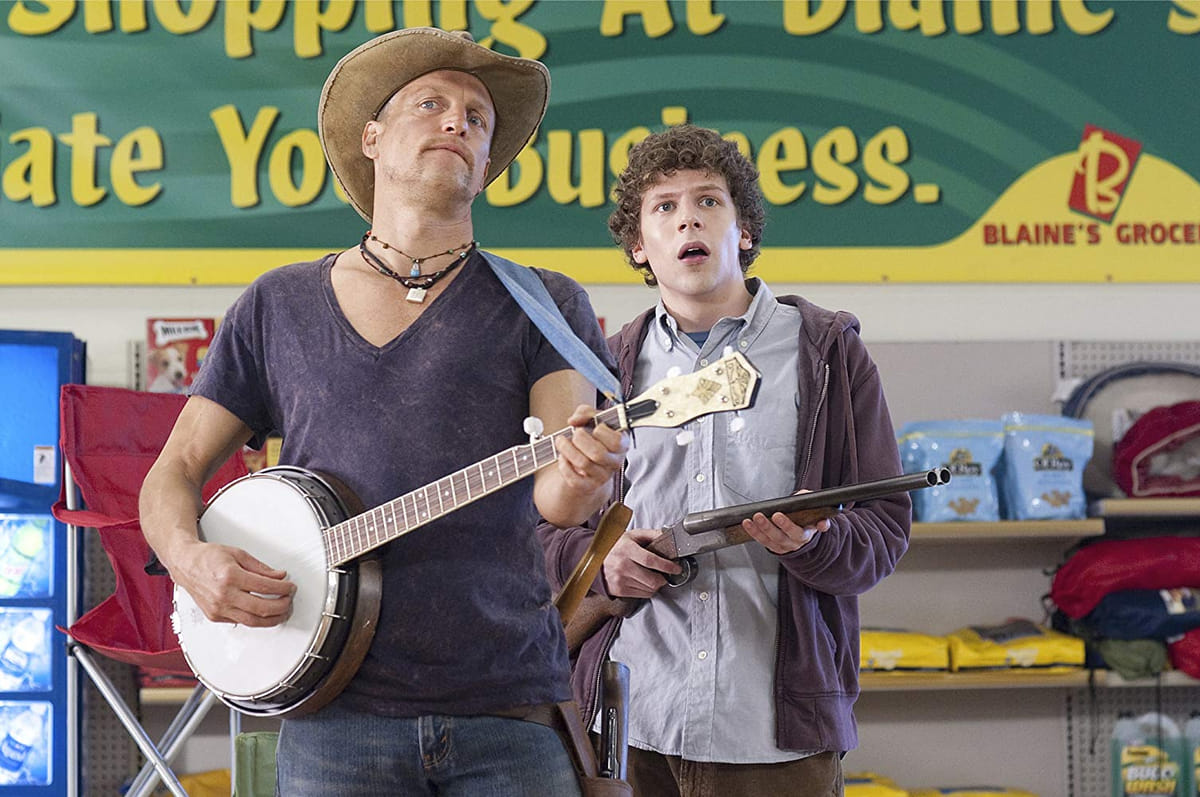 Nadat zombies de wereld hebben overgenomen blijft een jongeman (Eisenberg) in leven door nauwgezet een aantal zelfgeschreven regels na te leven. Hij doet bijvoorbeeld altijd zijn autogordels om, past op bij wc's (verstopplek voor zombies!) en hangt nimmer de held uit. Als hij een paar andere overlevers ontmoet, besluiten ze met elkaar op te trekken. Geestige, ironische zombiefilm, vooral de moeite waard door goedgeschreven personages. Stone en Breslin zijn bijvoorbeeld leuk als doortastende zussen, Harrelson is fantastisch als macho zombie-verdelger.