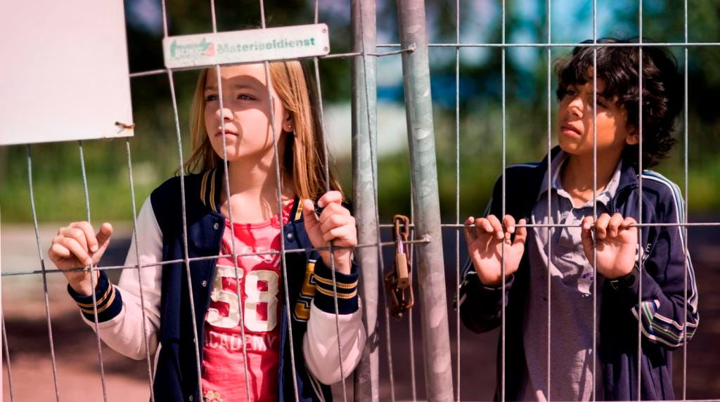 De elfjarige Lieke (Nachbar), die veel durft, woont bij haar gescheiden moeder. De ongeveer even oude Milad (Ali) is haar beste vriend. De ouders van Milad komen uit Iran. Als hun asielaanvraag wordt afgewezen besluiten Lieke en Milad weg te lopen naar Lieke's vader. Waar die woont? 'Ergens waar ze Frans spreken.' Sympathieke en leuke jeugdfilm, al rammelt het script soms een beetje en is het acteerwerk van de jonge hoofdrolspelers af en toe een tikje houterig. Op het Italiaanse Giffoni Film Festival werd Blijf! bekroond met de Amnesty International Award.