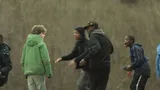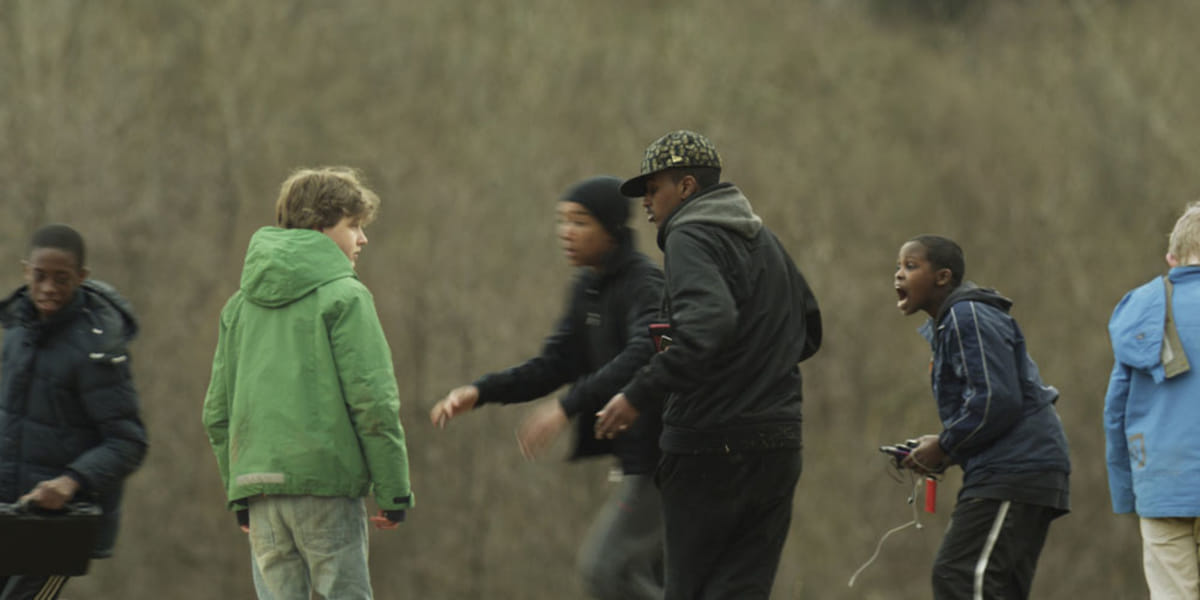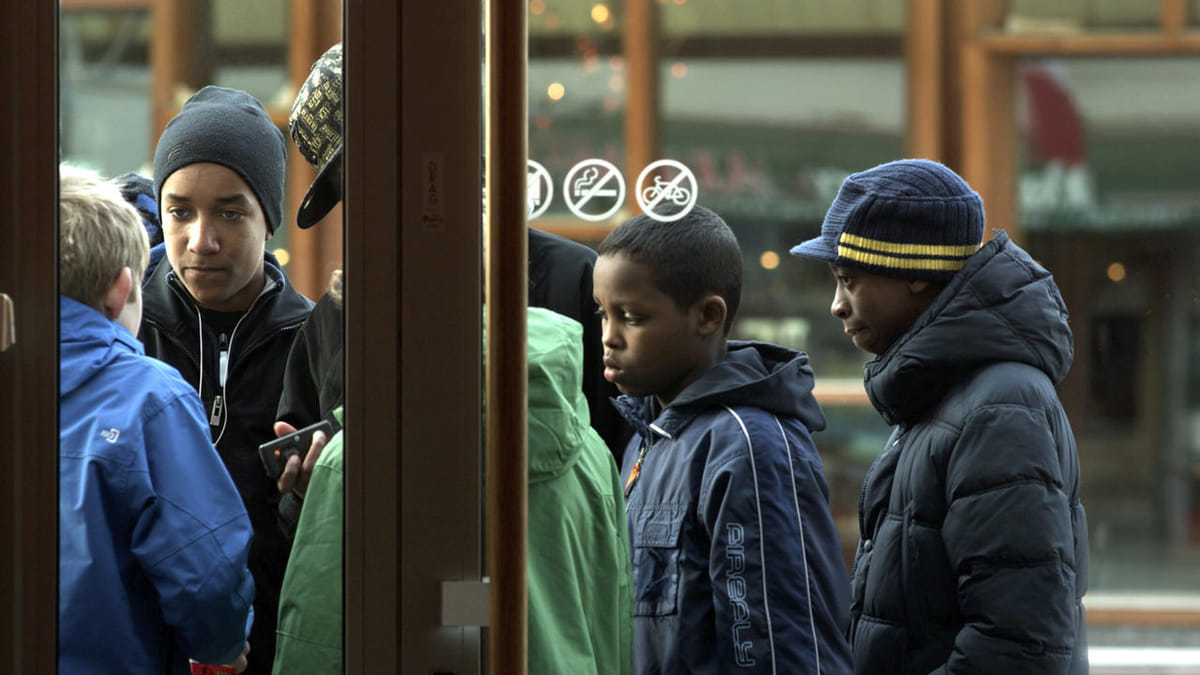 Twee blanke jochies van een jaar of elf, twaalf worden in een winkelcentrum aangesproken door twee donkere, net wat oudere mannetjes. Hoe laat het is, vraagt een van de donkere jochies. Een van de blanke mannetjes draait weg, de ander kijkt op zijn mobieltje en geeft antwoord: twaalf uur. Vijf voor twaalf...