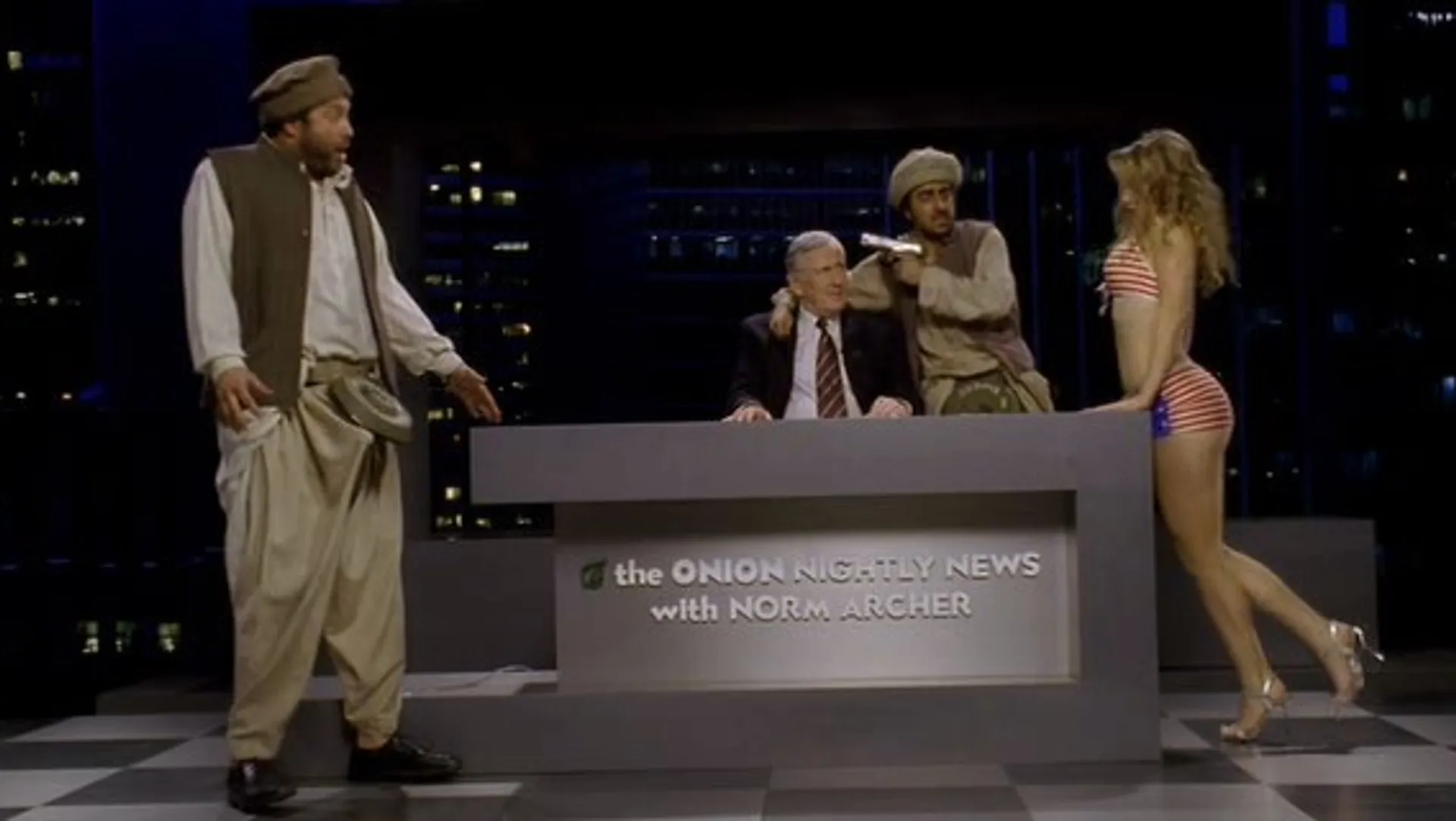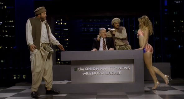 The Onion is een Amerikaans satirisch nieuwsblad dat sinds 1988 berichten verspreidt als: 'Drugs winnen drugsoorlog', 'Nieuw geheim paranoia-onderzoek onder willekeurige burgers' en 'Paus vergeeft misbruikte kinderen'. De makers van het blaadje begonnen begin deze eeuw aan een filmversie met satirische sketches maar stopten vanwege de inmenging van filmstudio Fox. Fox modderde door en kwam na vijf jaar op de proppen met een dvd. Overbodig, want de sketches slaan stuk voor stuk de plank mis met vlakke opzetjes en wankele punchlines. Niettemin aardig om kennis van te nemen.