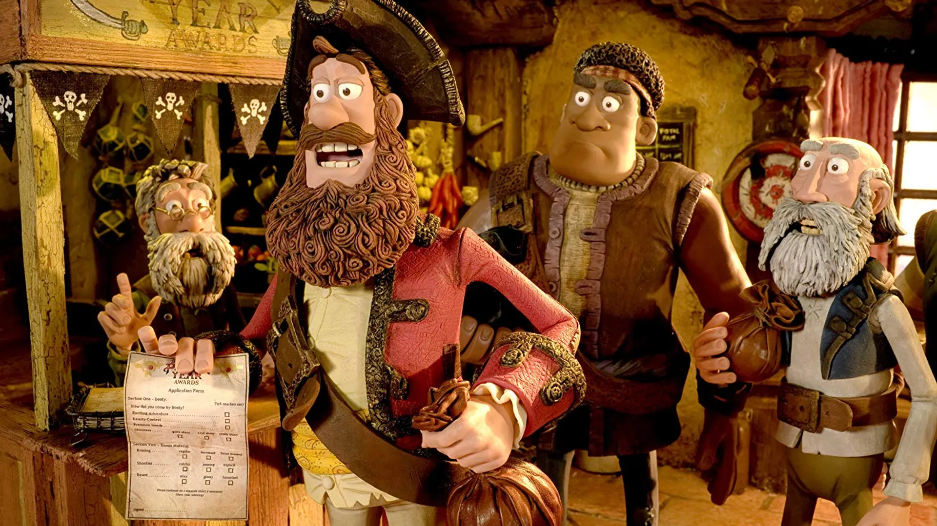 ‘BUITengewoon grappig’. De pay-off in chocoladeletters op het Nederlandse affiche van de nieuwste Aardmanproductie De piraten! – Alle buitenbeentjes aan dek doet het ergste vermoeden. BUIT. Goh. En op het origineel was het niet veel gevatter (It’s a plunderful life). Als de film dan ook nog met horten en stoten op gang komt, en blijkt dat Karin Bloemen haar stem heeft geleend aan de Britse Queen Victoria anno 1837 lijkt De piraten!, ondanks de lengte van 88 minuten, een lange zit te worden.