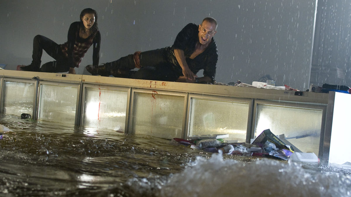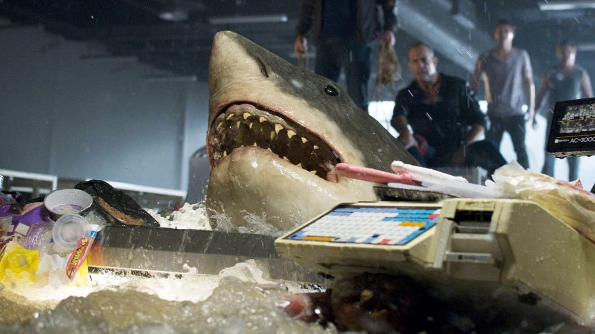 Waar gaat een hongerige haai kijken als hij na een tsunami ineens middenin een overstroomd Australisch kuststadje zwemt? De supermarkt natuurlijk! Vol met allerhande koud vlees (de slagerijafdeling) en warm vlees (personeel en klanten). Dat is de opzet van Bait, en voor de extra spanning zitten er een paar gewapende figuren bij die de zaak net probeerden te beroven. En natuurlijk een aantal jonge stelletjes en nog wat ten dode opgeschreven strooigoed. Feitelijk een studiofilm met iedereen bovenop de supermarktrekken, opgejaagd door een vier meter lange haai. Low budget, lage acteereisen, niet de beste effecten, maar ondanks dat een sympathieke B-horrorhaaienfilm.
